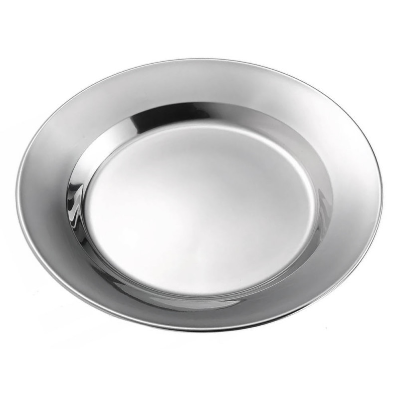 Тарелка из нержавеющей стали – незаменимая и универсальная посуда, которая незаменима для походов и пикников. При взаимодействии с пищевыми продуктами нержавеющая сталь не образует соединений, вредных для организма человека. Прочная, легкая и компактная.Характеристики:• Материал: нержавеющая сталь.