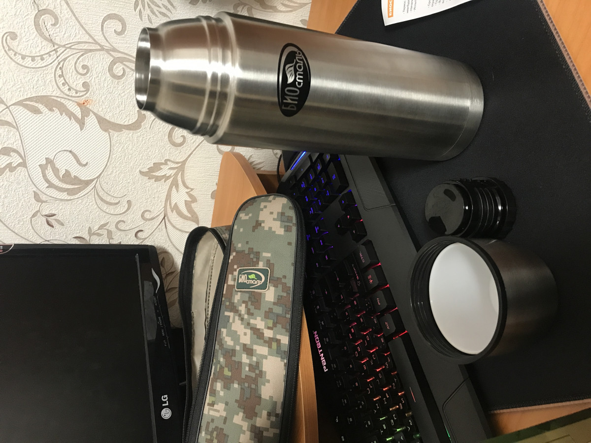 Термос 1,0 л BIOSTAL Охота NBP-1000B узкое горло в чехле