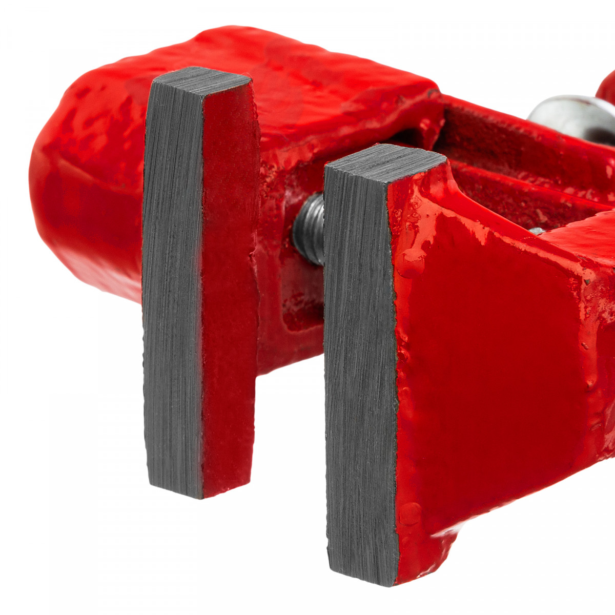 - Простое использование — винтовой зажимной механизм позволяет легко устанавливать и снимать тиски с рабочего стола.