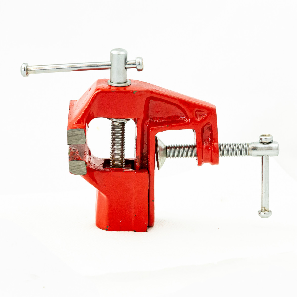 - Простое использование — винтовой зажимной механизм позволяет легко устанавливать и снимать тиски с рабочего стола.