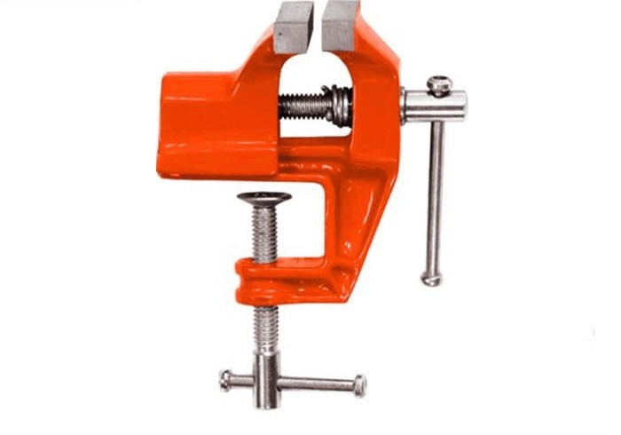 Мобильные тиски с креплением для стола от производителя инструментов Sparta - отличный помощник, предназначенный для фиксации небольших изделий из дерева, пластика или металла. Тиски малых габаритных размеров (60х100х100 мм), имеющие надежное крепление к столу, либо специальному верстаку с помощью струбцины, с легкостью займут любое удобное место. Рукоятка винтового зажима фиксации обрабатываемого изделия перемещается относительно центра и зафиксирована