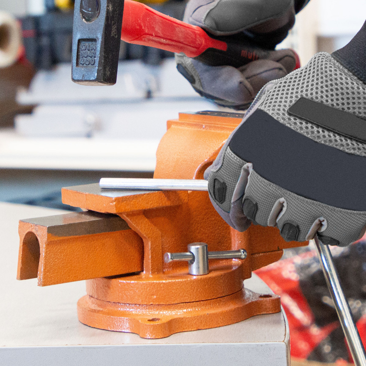 - Поворотные тиски позволяют менять положение заготовки для удобства ее обработки.