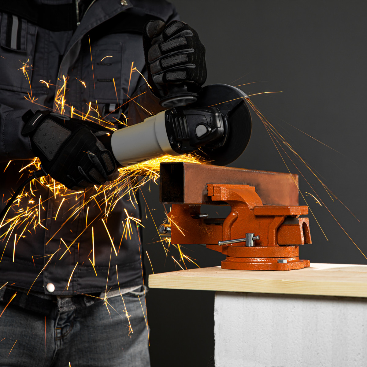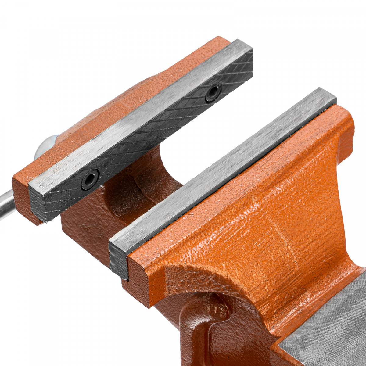 • Корпус тисков выполнен из чугуна, а губки — из стали, благодаря чему достигается высокая прочность инструмента.