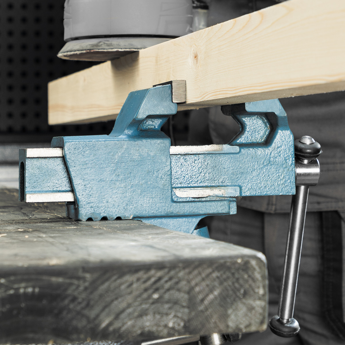 Слесарные тиски 18660, ширина губок 63 мм, с креплением для стола и винтовым зажимом, используются для надежной фиксации заготовок. С их помощью удобно выполнять непрофессиональные столярные и слесарные работы. Тиски с рабочим ходом 80 мм рассчитаны на удержание небольших заготовок.