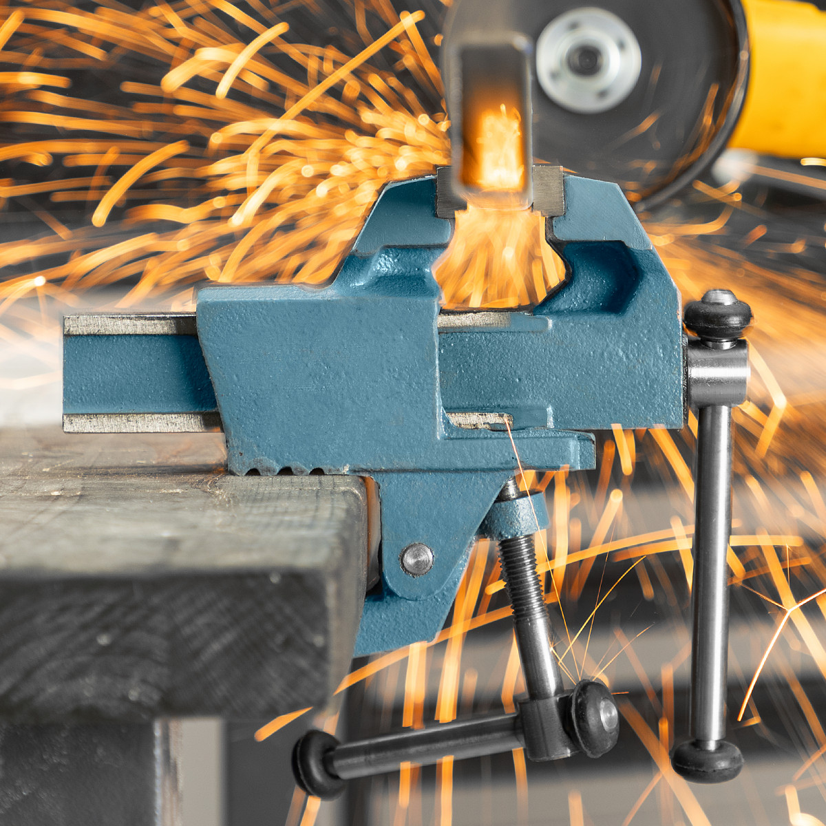 - Надежная фиксация изделий — тиски оснащены рельефными губками.