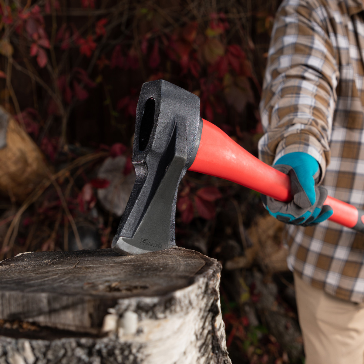 • Комфортное использование — благодаря резиновым накладкам топорище не выскальзывает из рук.
