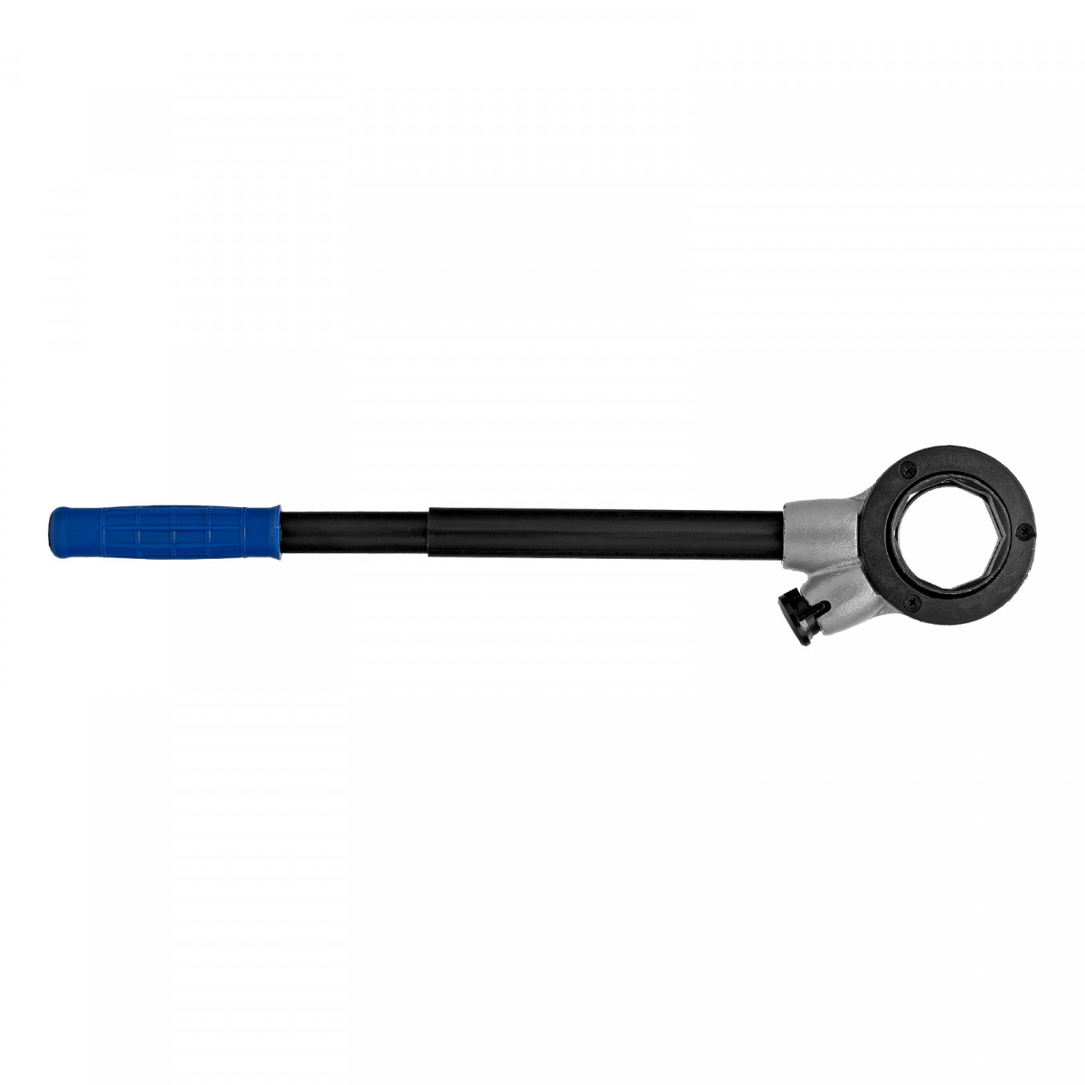 Трещотка для клуппов с удлинителем Сибртех 77373 удерживает клупп во время нарезания трубной резьбы. Удлиненная ручка позволяет увеличить крутящий момент, не прилагая значительных усилий. Трещотка используется для монтажа трубопроводов и решения бытовых задач.