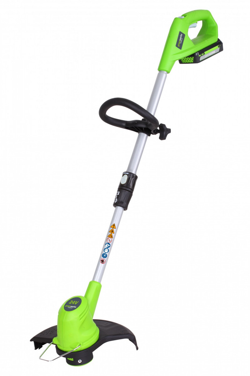 Аккумуляторный триммер Greenworks Basic G24LT30 2101207 имеет вращающееся основание и удобен для кошения травы под кустами, около заборов и клумб. Прост в использовании и безопасен, так как оснащен системой защиты от случайного включения. Имеет ограничитель для защиты растений, защитный кожух и дополнительную d-образную рукоятку. Модель не загрязняет окружающую среду и отличается небольшими размерами.