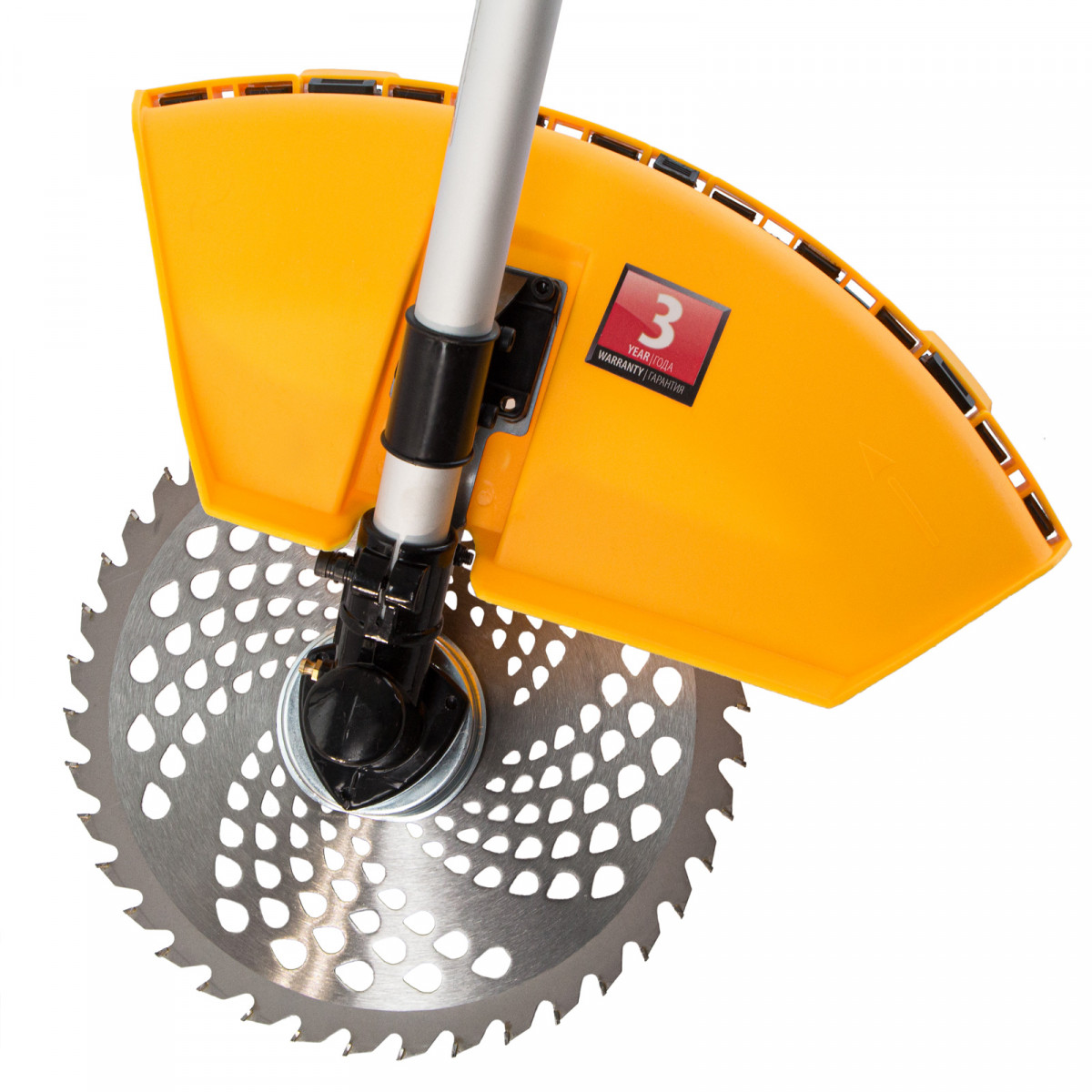 - Удобное хранение и транспортировка — штанга легко разбирается на 2 части, поэтому триммер не занимает много места.