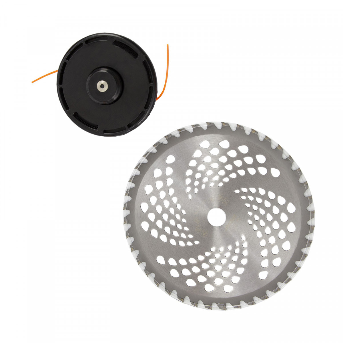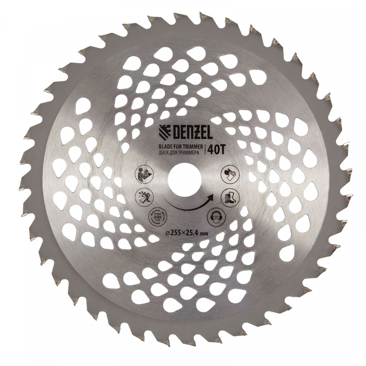 • Дополнительные возможности — можно приобрести и установить на триммер диски Denzel 96323, 96325 для быстрого удаления растительности с жесткими стеблями (полыни, крапивы, лебеды), 96328 для скашивания молодых побегов кустарника диаметром до 3 мм.