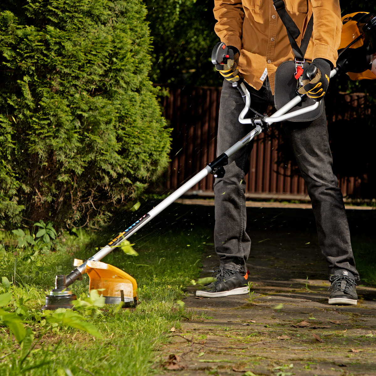• Мобильность — небольшой вес 7,8 кг и качественная балансировка позволяют легко перемещать триммер и маневрировать даже на сложных участках.