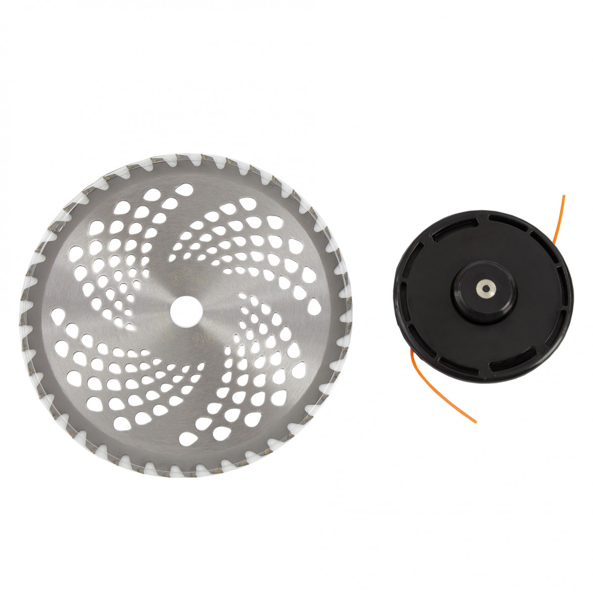 • Дополнительные возможности — можно приобрести и установить на триммер диски Denzel 96323, 96325 для быстрого удаления растительности с жесткими стеблями (полыни, крапивы, лебеды), 96328 для скашивания молодых побегов кустарника диаметром до 3 мм.