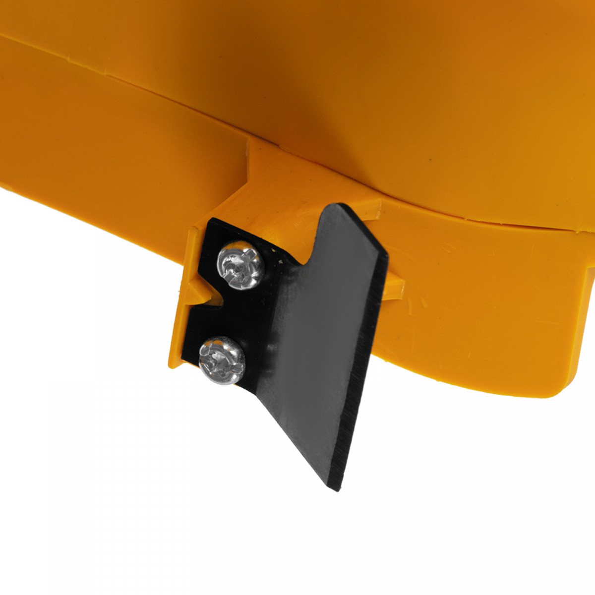 - Специальный нож на фартуке кожуха — концы лески подрезаются до нужной длины, это позволяет предотвратить перегрузку двигателя.
