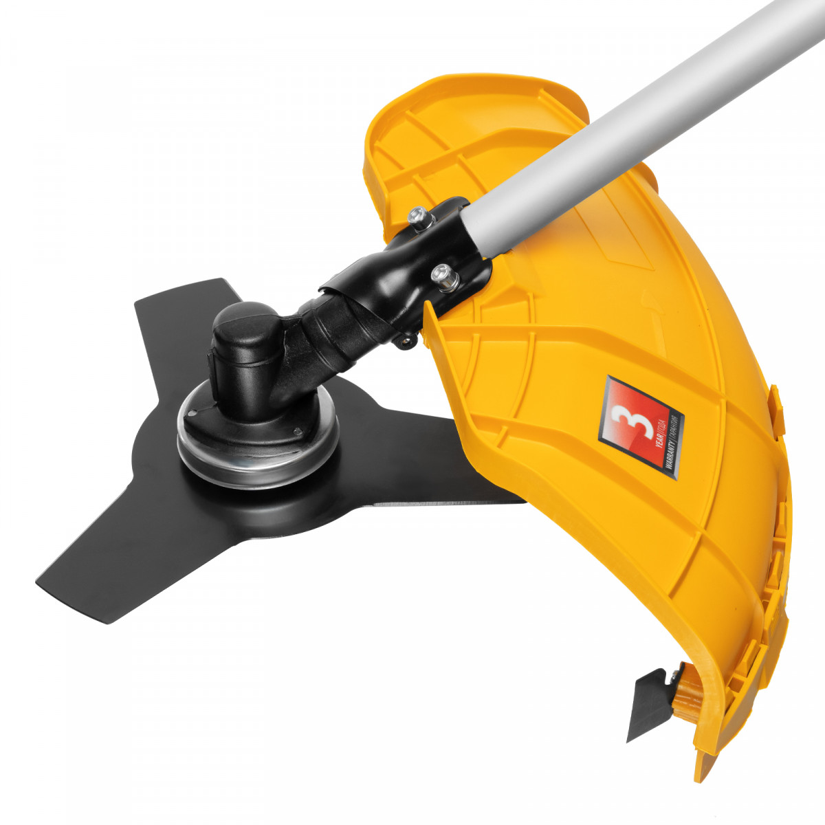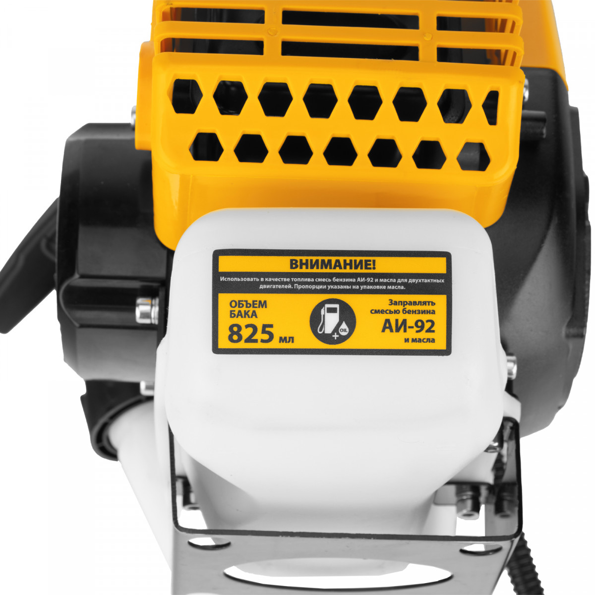 Бензиновый триммер Denzel DTS-33 962115 с двигателем объемом 33 куб. см и неразъемной штангой поставляется комплектом из 2 частей. Усиленная катушка с леской предназначена для скашивания мягкой травы, а трехлопастный нож — для скашивания травы различных типов, в том числе с жесткими стеблями (полыни, крапивы, лебеды). Ширина скашивания леской составляет 42 см, ножом — 25,5 см.,Двухтактный бензиновый двигатель мощностью 1,8 л.с. обеспечивает эффективное решение поставленных задач и полную автономность. Работать можно даже в самых отдаленных участках сада, не заботясь о наличии сети электропитания.