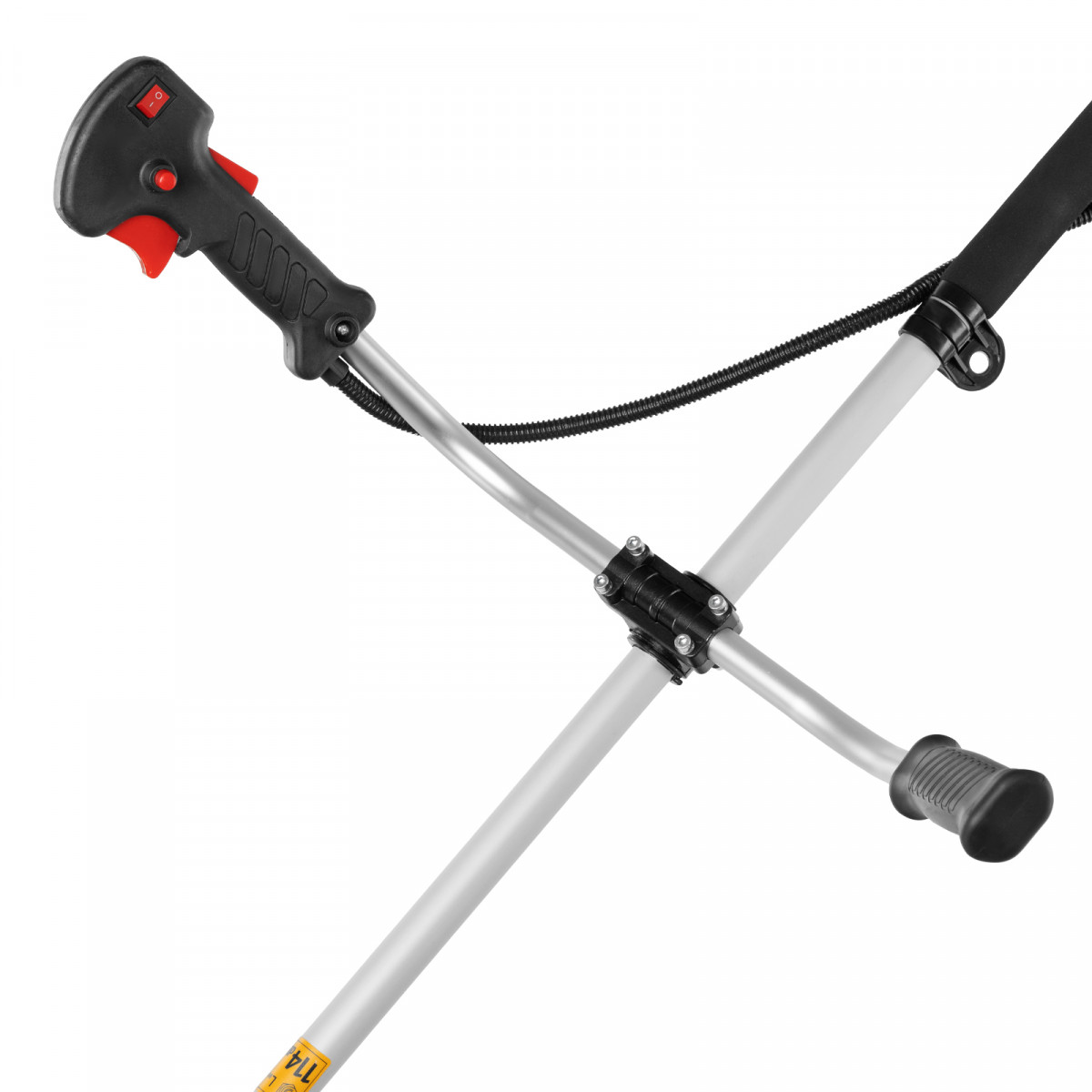 - Защита от случайного пуска — блокиратор курка газа предотвращает включение триммера по неосторожности, обеспечивая безопасность пользователя.