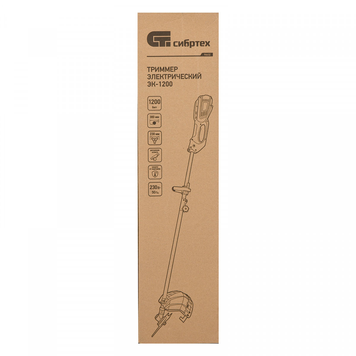 Электрический триммер Сибртех ЭК-1200 96632 мощностью 1200 Вт, с разборной штангой, предназначен для стрижки газона с помощью катушки с шириной скашивания 380 мм, а входящий в комплект режущий диск позволяет избавляться от сорняков, растительности с толстыми стеблями, а также срезать мелкий кустарник. Триммер пригодится в местах, недоступных для колесной газонокосилки: между грядками, вдоль стен, заборов и тротуаров. С ним легко справится даже неопытный пользователь, т. к. он прост в применении и не нуждается в техническом обслуживании.