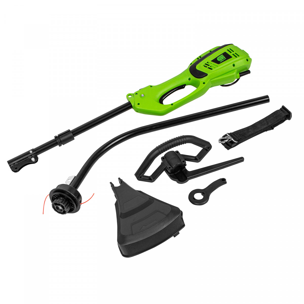 • Эргономичность — плечевой ремень снижает нагрузку на руки, а D-образная ручка обеспечивает надежный хват и облегчает управление триммером.