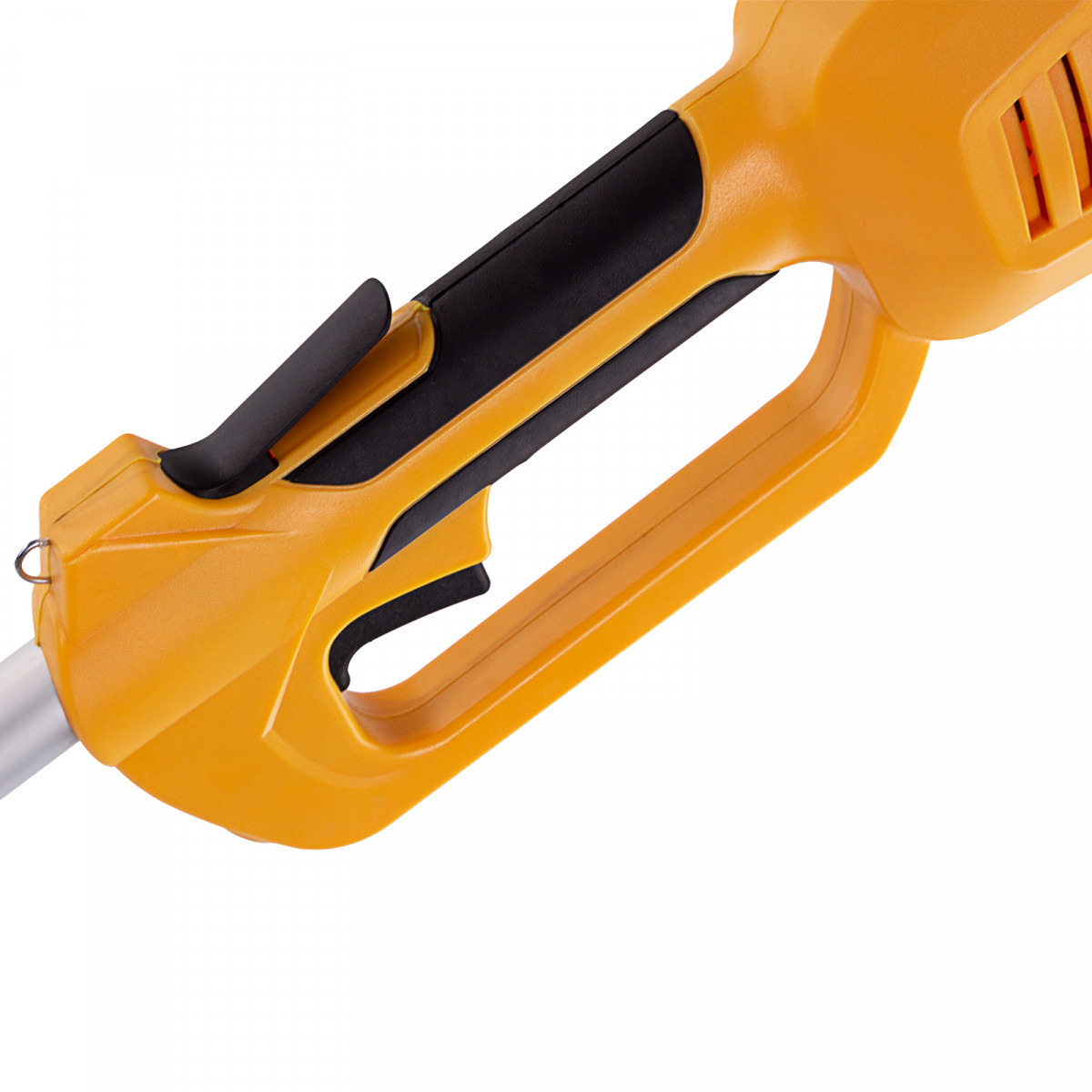 - Удобное хранение и транспортировка — благодаря разборной штанге триммер не занимает много места.