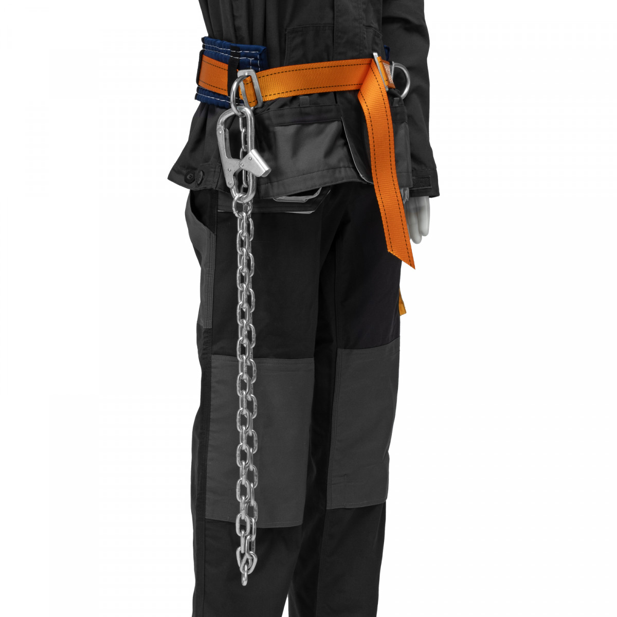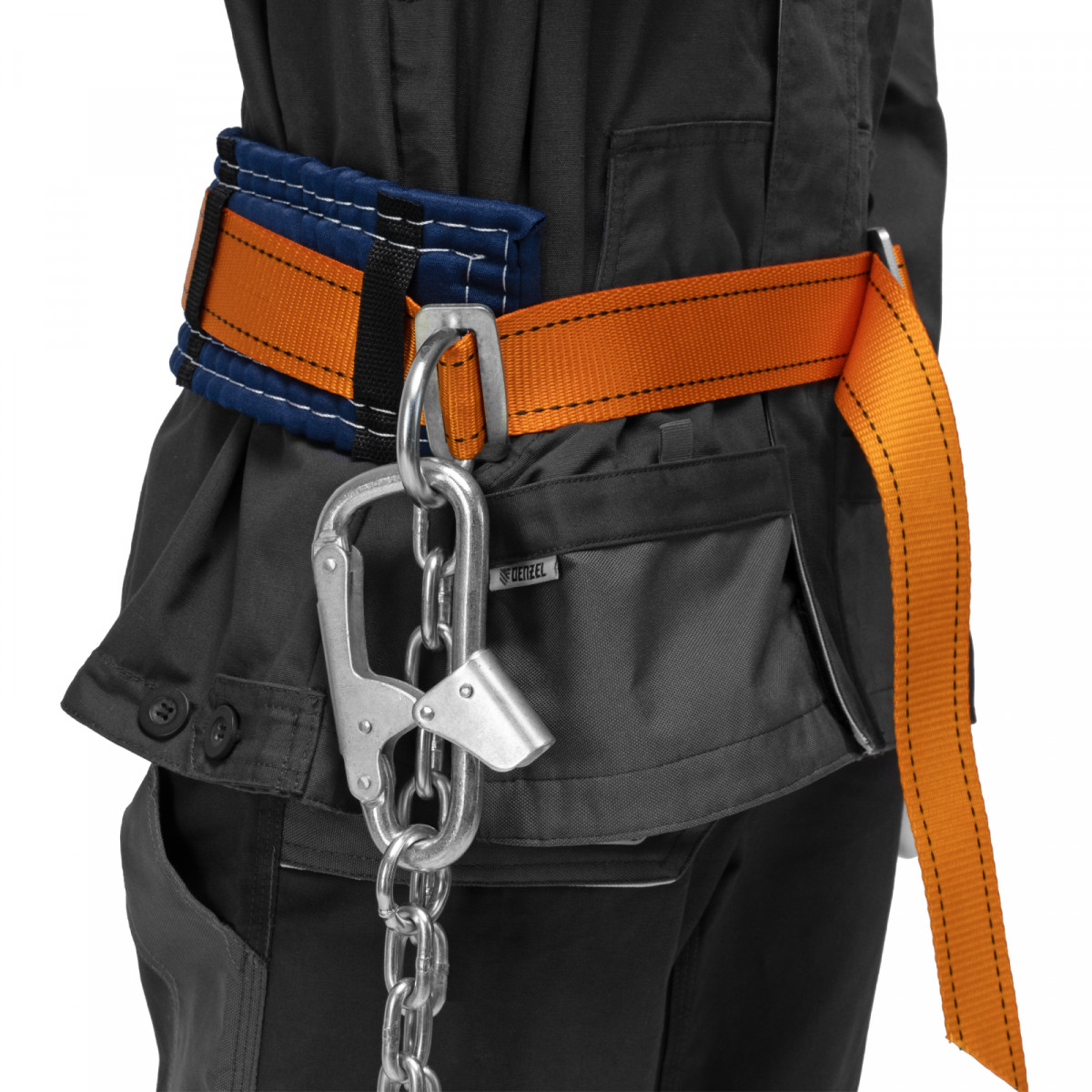 • Универсальность — благодаря быстрозатягивающейся регулировочной пряжке привязь можно отрегулировать в соответствии с размером талии пользователя.