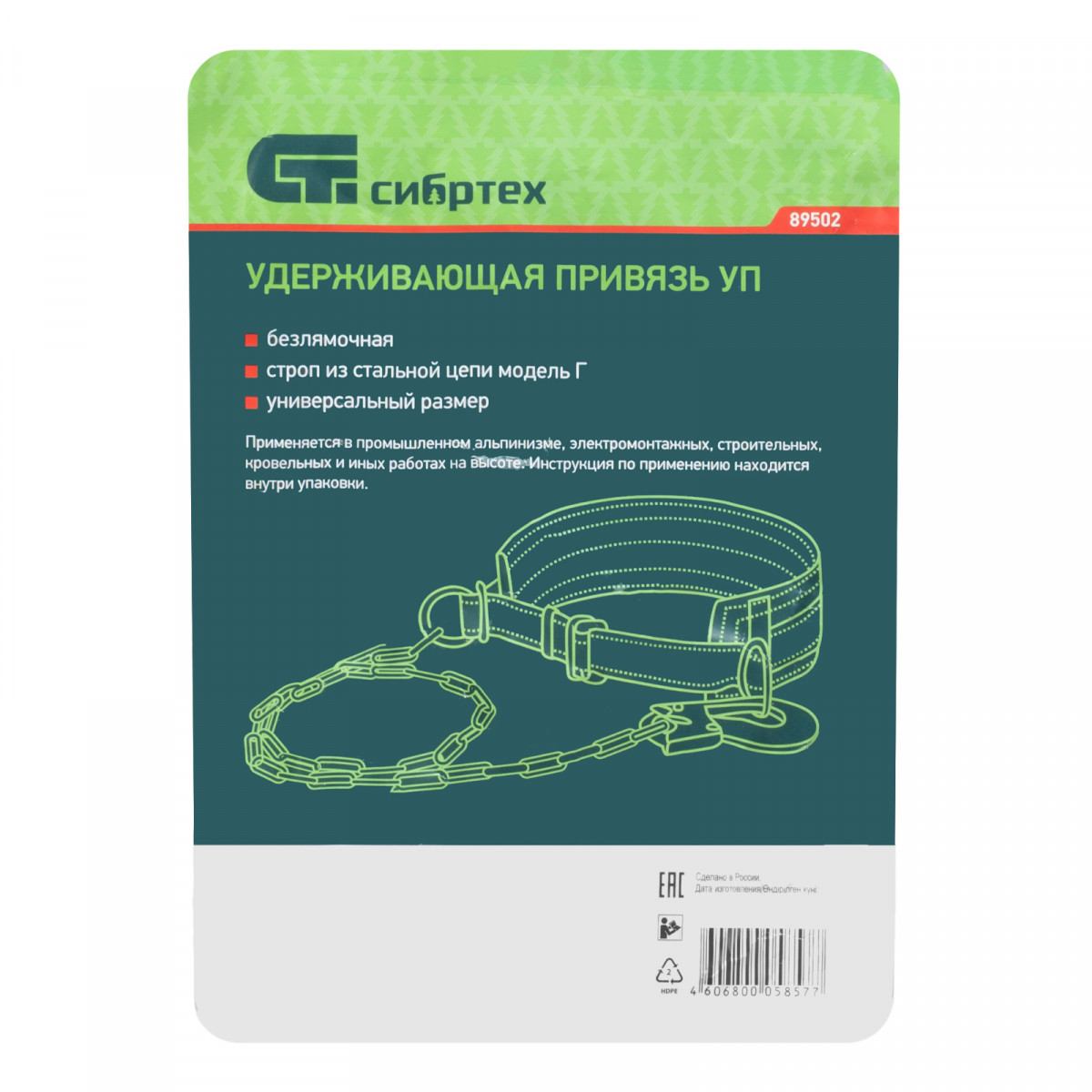 Удерживающая привязь УП I, безлямочная, строп из стальной цепи модель Г Сибртех