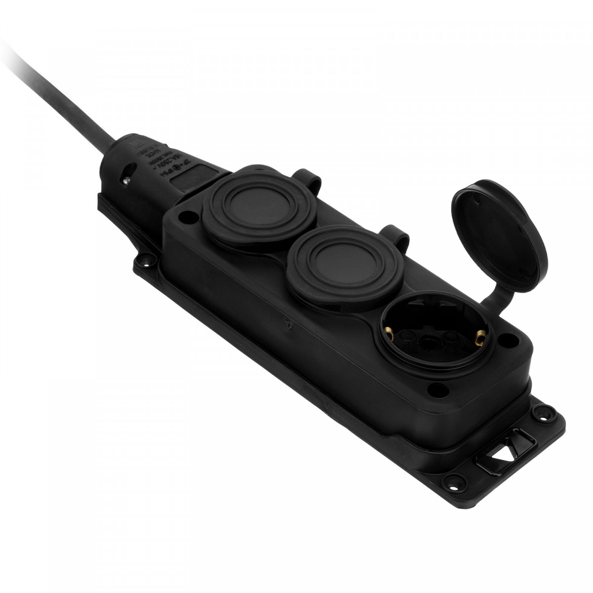• Высокая степень защиты — удлинитель можно использовать даже во время выпадения осадков.