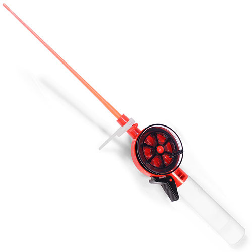 Зимняя удочка с открытой шпулей, клавишным стопором и съемными ножками для установки на льду, рукоятка средняя из пенопласта, диаметр катушки 55 мм.