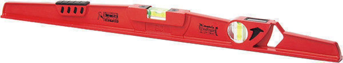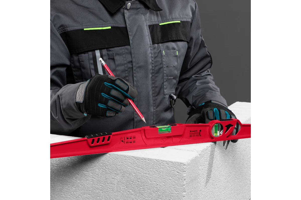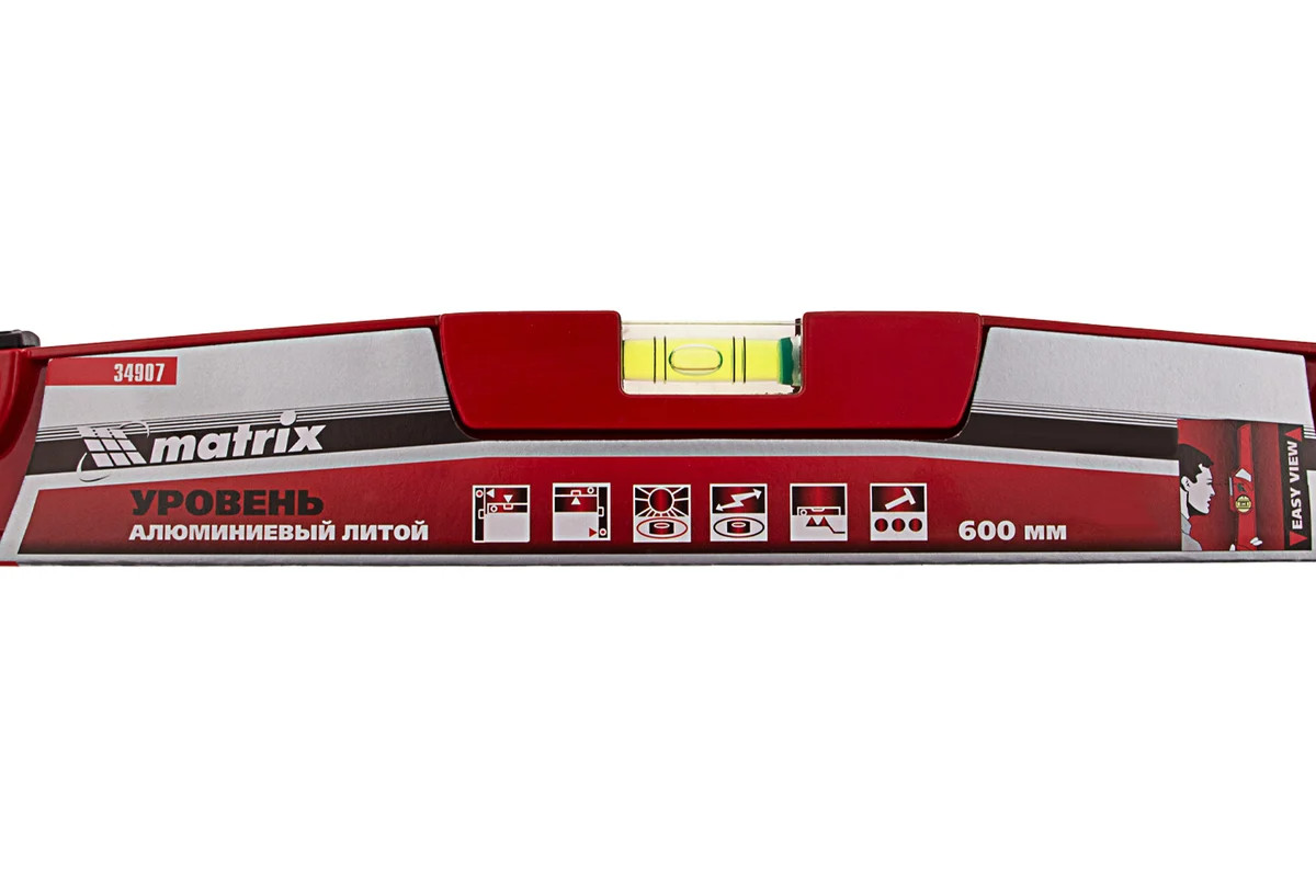 Алюминиевый уровень 600 мм, литой, 2 глазка , ударная площадка MATRIX 34907 обладает высокой прочностью. Наличие ударной площадки для выравнивания кирпича или блоков при укладке существенно упрощает работу кладочника. Для точности измерений имеются насечки возле каждого глазка и отражатели.