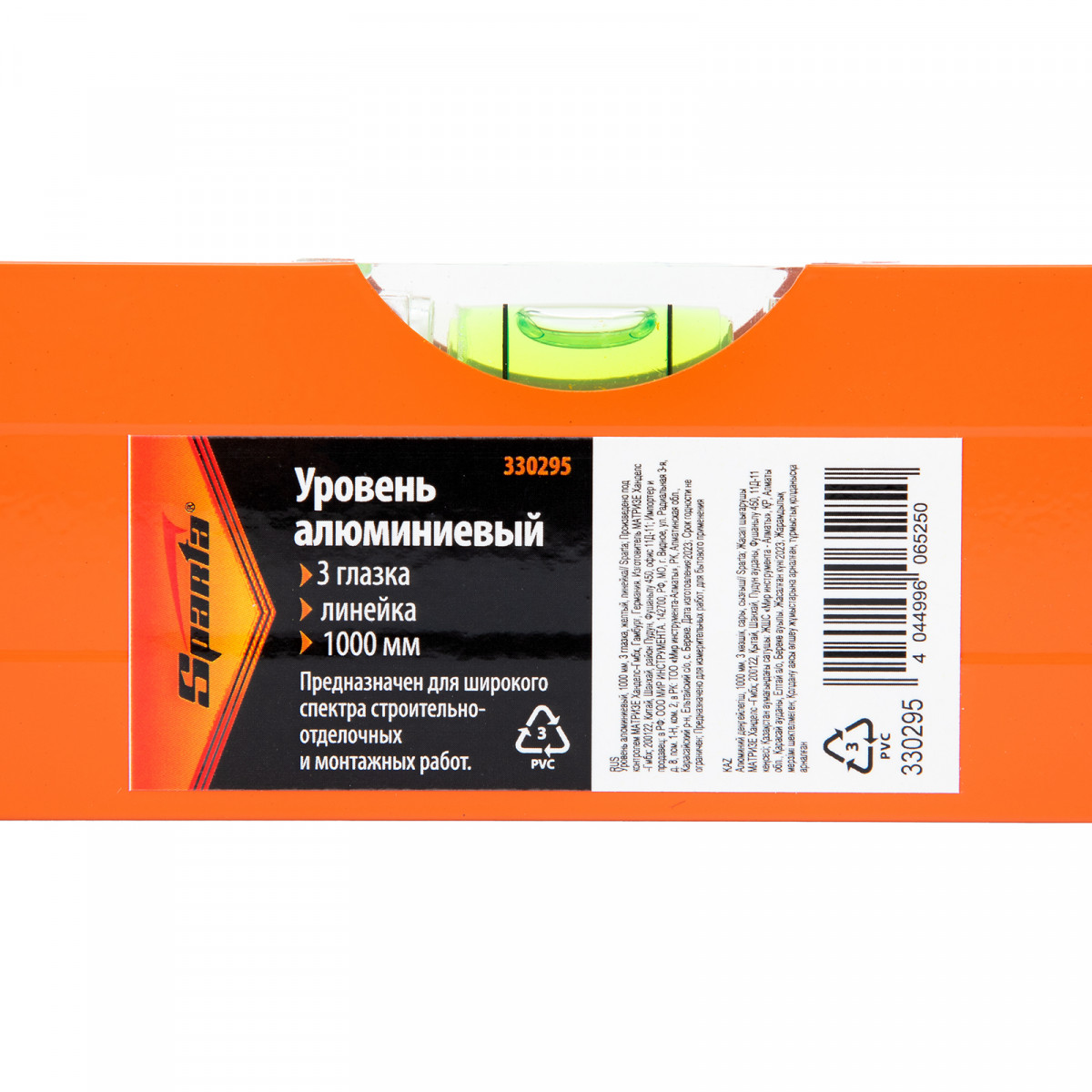Алюминиевый уровень Sparta 330295 длиной 1000 мм, желтого цвета, с 3 глазками и линейкой, будет полезен при проведении строительных, отделочных, облицовочных и других работ, требующих особой точности. Уровень с тремя глазками поможет определить отклонение от горизонтальной и вертикальной плоскости, выставить угол 45°, измерить предметы и т. д.