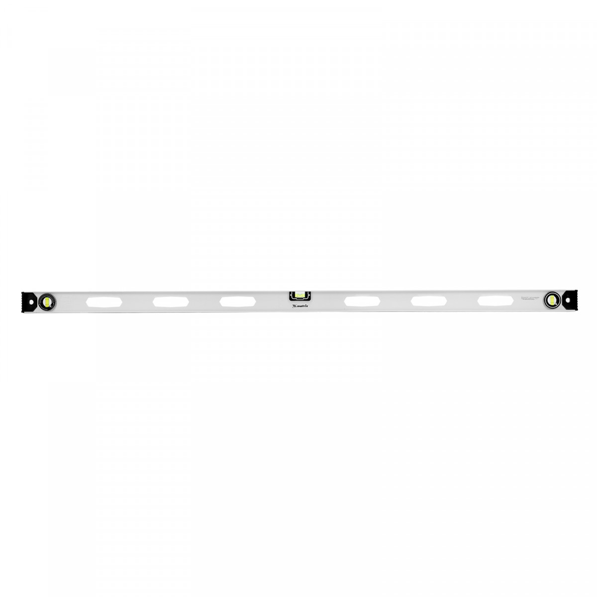 Алюминиевый уровень Matrix «Рельс» 34035 длиной 1500 мм имеет 3 глазка: 2 для проверки отклонений от заданной вертикали и горизонтали и 1 поворотный для проверки наклонных поверхностей.