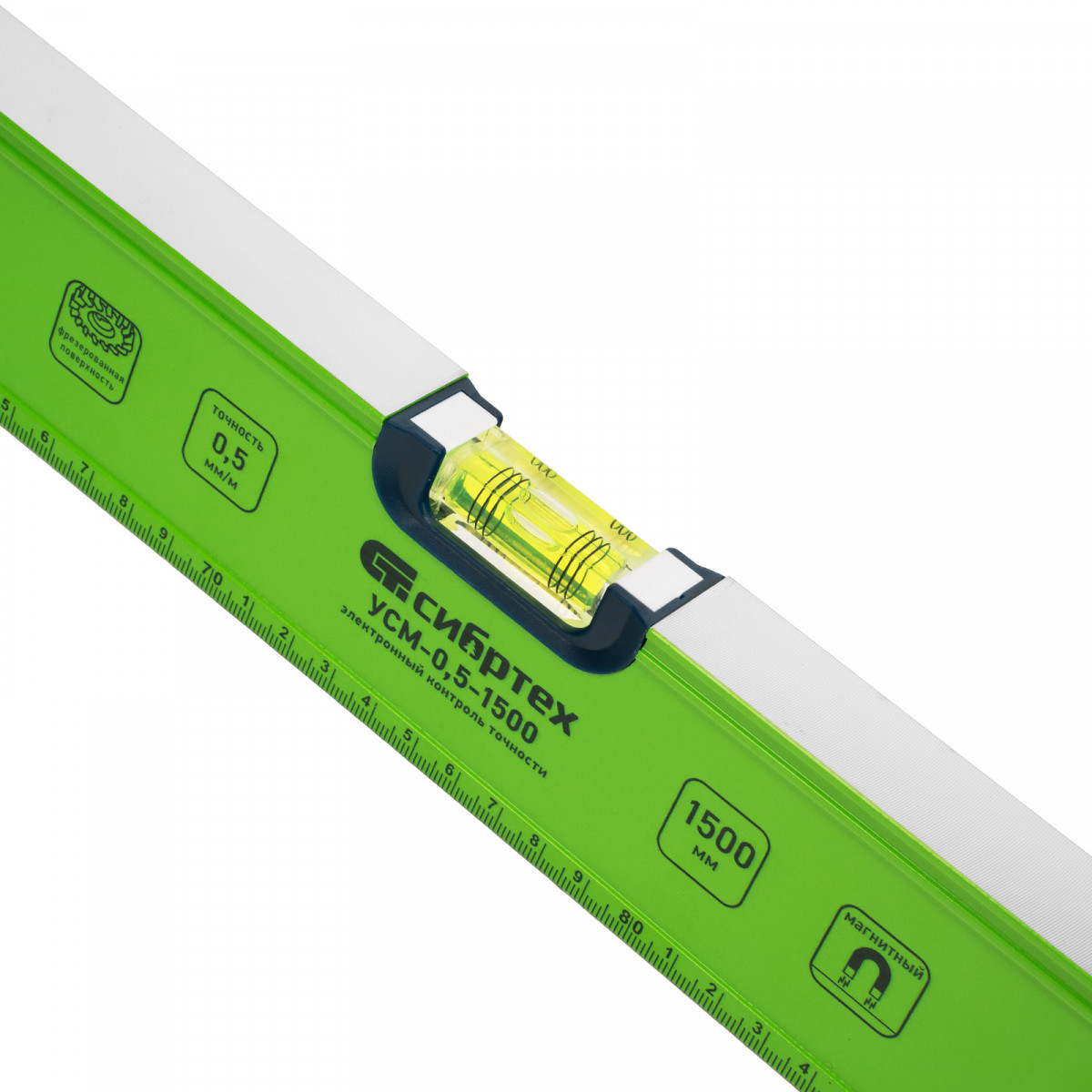 Уровень алюминиевый УСМ-0,5-1500, фрезерованный, 3 глазка, магнитный, рукоятки, 1500 мм Сибртех