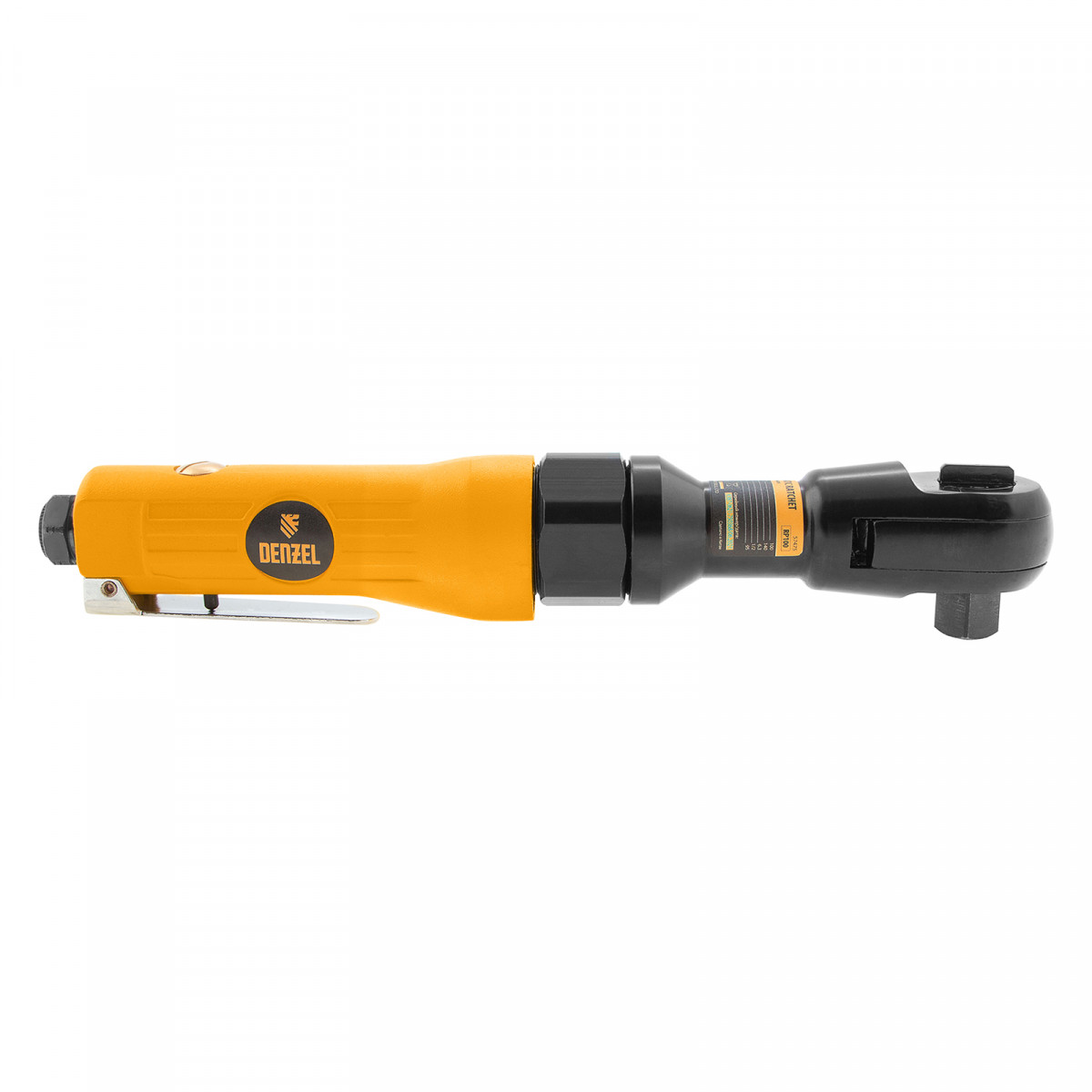 Усиленная пневмотрещотка Denzel RP100 57475, 160 об/мин, с квадратным хвостовиком 1/2 дюйма, — незаменимый помощник в автосервисе, слесарном цехе, на шиномонтаже, в частной мастерской и в любом деле, где нужен монтаж и демонтаж резьбового крепежа. Крутящий момент 100 Нм позволяет аккуратно работать с мелкими крепежными элементами без риска их повреждения и оперативно справляться со сложными, тугими соединениями. Применение трещотки в быту или промышленности позволяет сэкономить время и силы мастера.,Инструмент предназначен для работы при давлении 6,3 бар, расход воздуха в среднем не превышает 200 л/мин. Во время работы не забывайте использовать специальное масло ISO 46, которое можно добавлять как напрямую в инструмент, так и с помощью блока подготовки воздуха Denzel 57469, включающего в себя лубрикатор для автоматической подачи масла.
