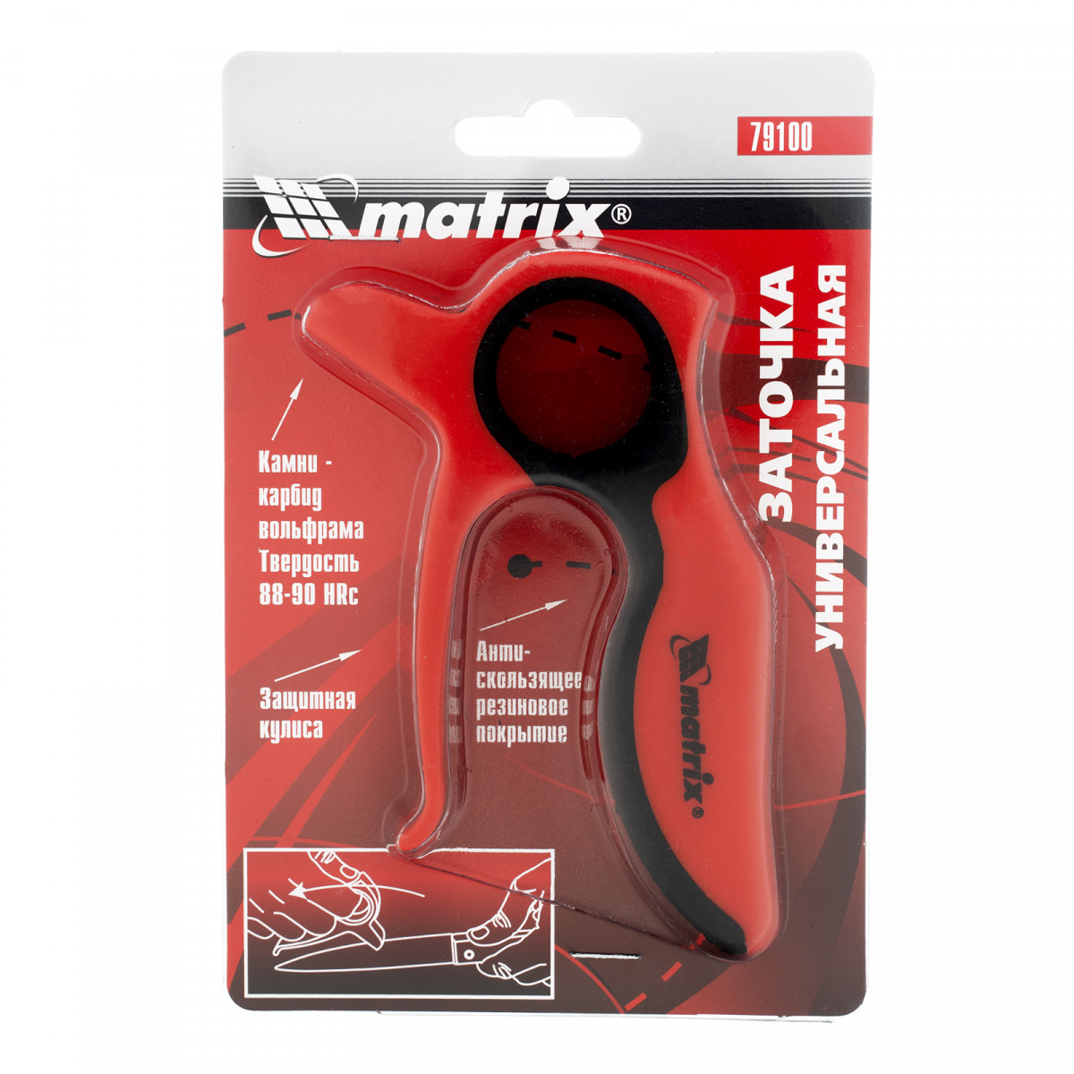 Универсальное устройство для заточки ножей Matrix 79100 позволяет 1-2 движениями восстановить рабочие качества режущих инструментов. Подходит как правшам, так и левшам. Для защиты пальцев предусмотрена специальная кулиса. Простота использования делает приспособление незаменимым помощником для домашних хозяек, садоводов, владельцев дачных участков.