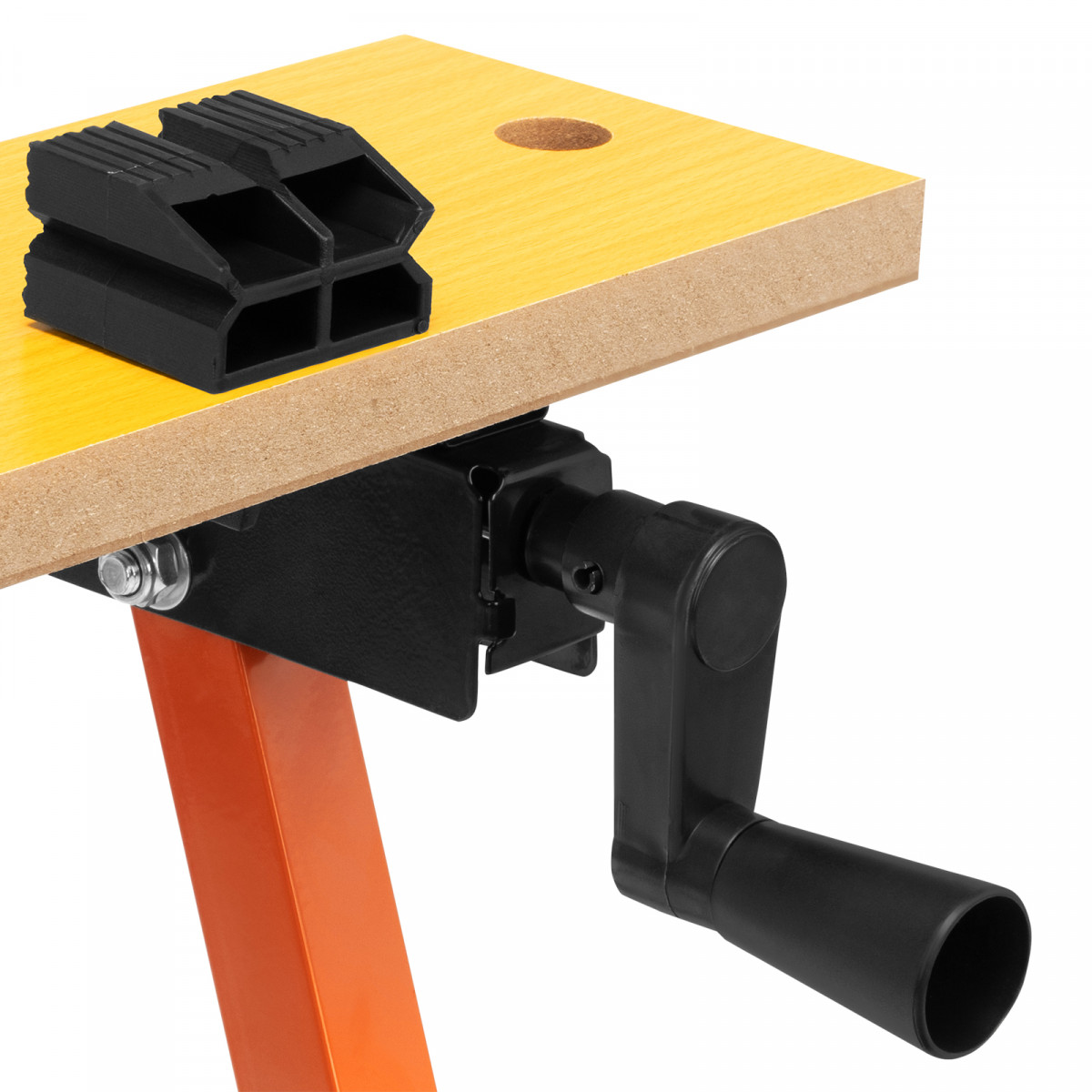 Портативный верстак-тиски Sparta 257065 размером 605 х 635 х 750 мм служит для зажимания заготовок и используется для выполнения столярных и слесарных работ. Столешница верстака представляет собой тиски из двух раздельных блоков, которые позволяют фиксировать даже детали с непараллельными гранями. Верстак пригодится дома и в частной мастерской. Приспособление необходимо устанавливать на ровной поверхности для максимальной устойчивости и исключения травм из-за несоблюдения техники безопасности.