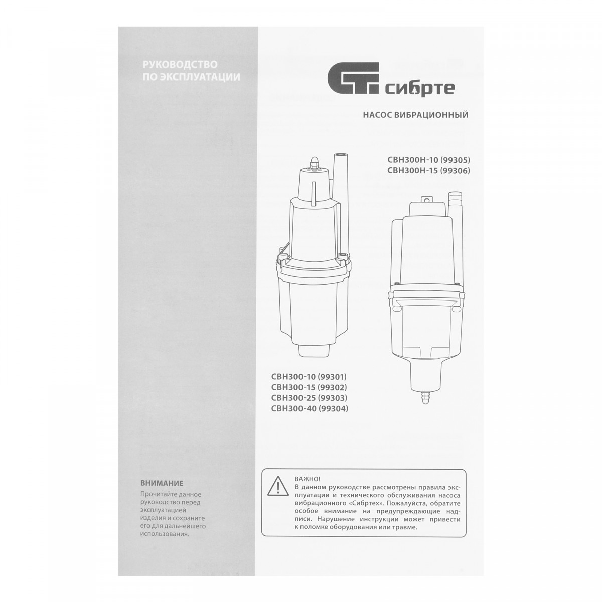 Вибрационный насос СВН300-15, верхний забор, 300 Вт, напор 75 м, 1200 л/ч, кабель 15 м Сибртех