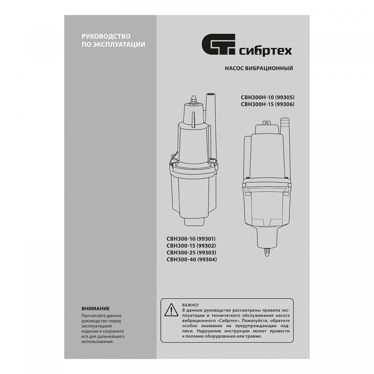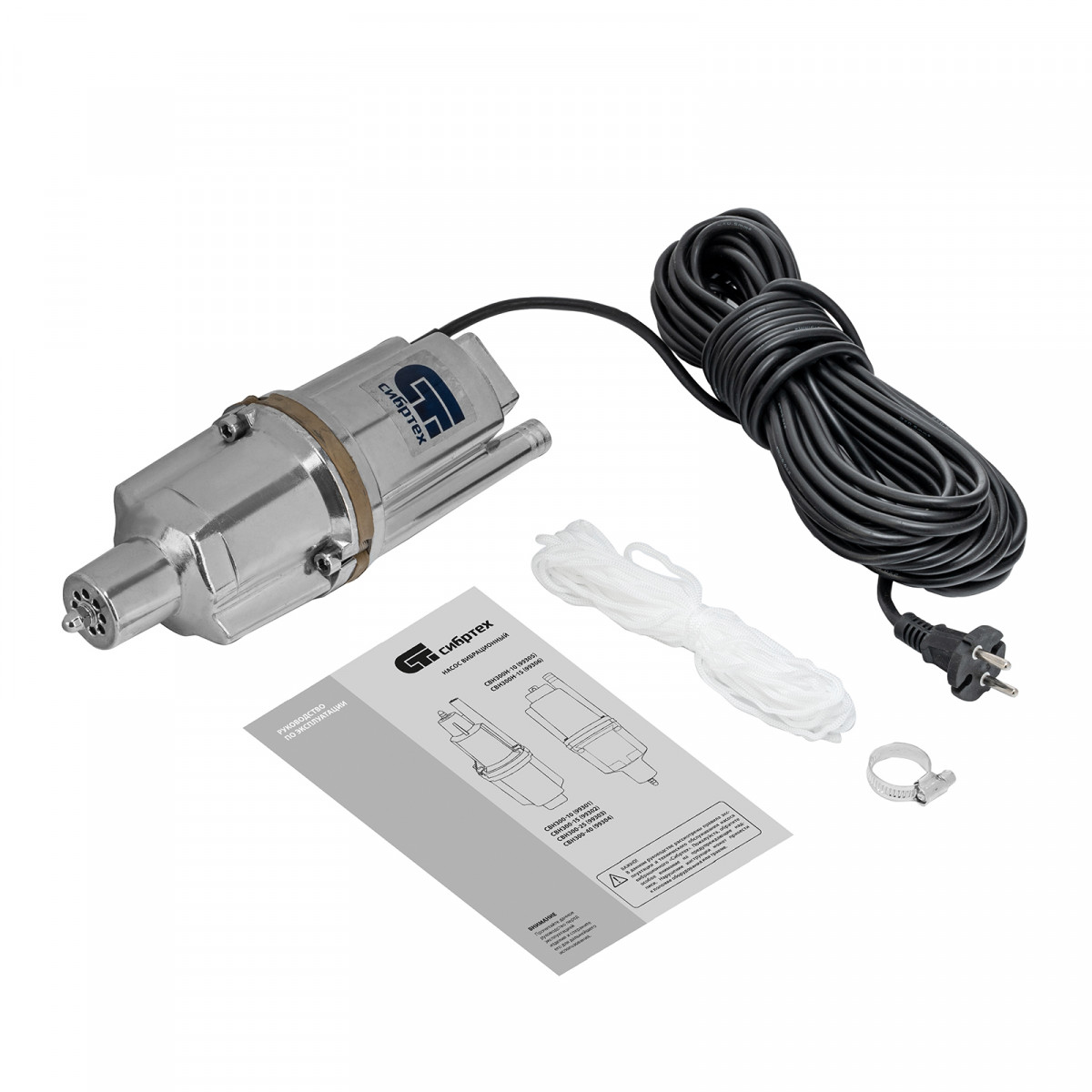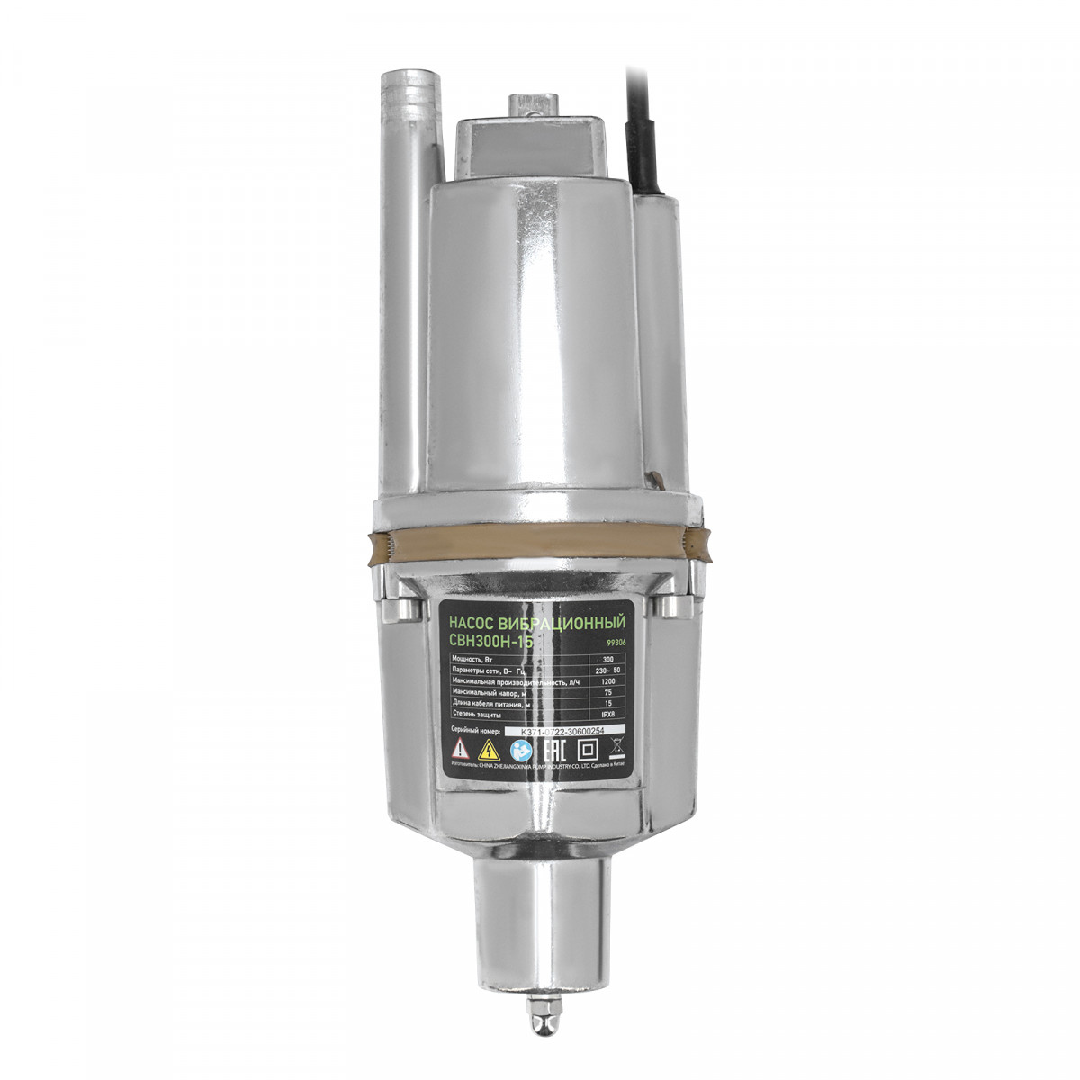 Вибрационный насос СВН300Н-15, нижний забор, 300 Вт, напор 75 м, 1200 л/ч, кабель 15 м Сибртех