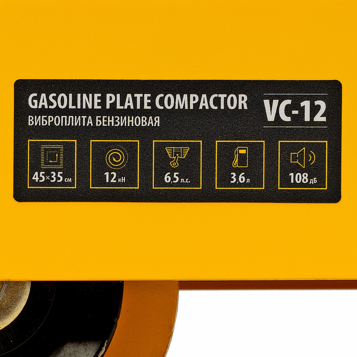 Виброплита бензиновая VC-12, 12 кН, 45*35 см, 196 см3 Denzel