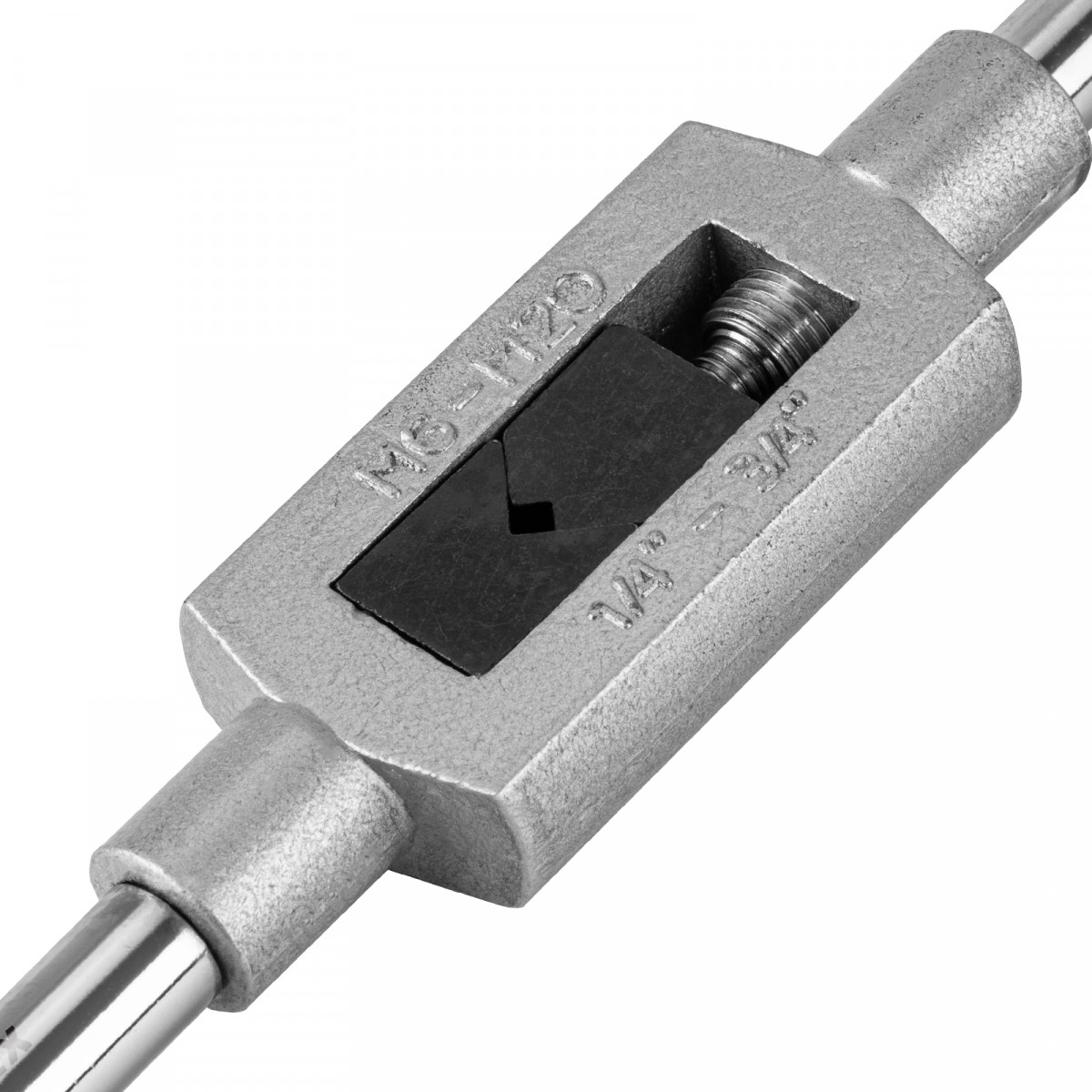 Вороток Сибртех 76920 подходит для зажима метчиков, используемых для ручного нарезания внутренней резьбы М6-М20 в отверстиях и цилиндрических деталях. Применяется во время ремонта резьбовых соединений, пригодится в мастерской или гараже.