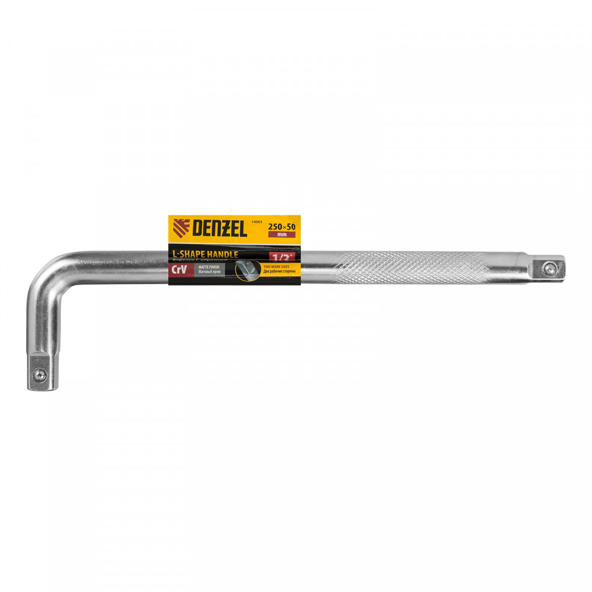 Вороток Г-образный, 250*50 мм, квадрат 1/2", CrV, матовый хром Denzel