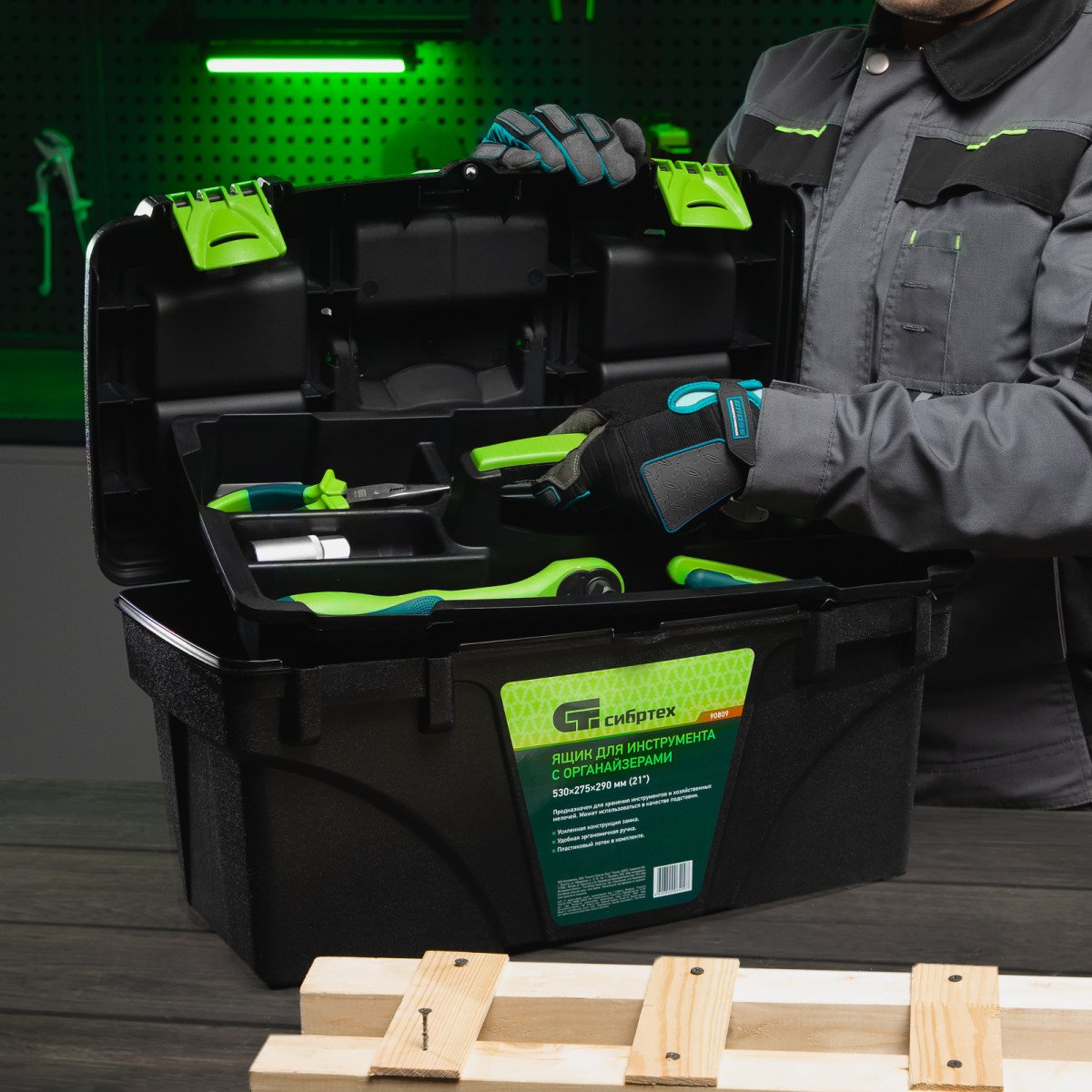 Ящик для инструментов 21”, с органайзерами Сибртех