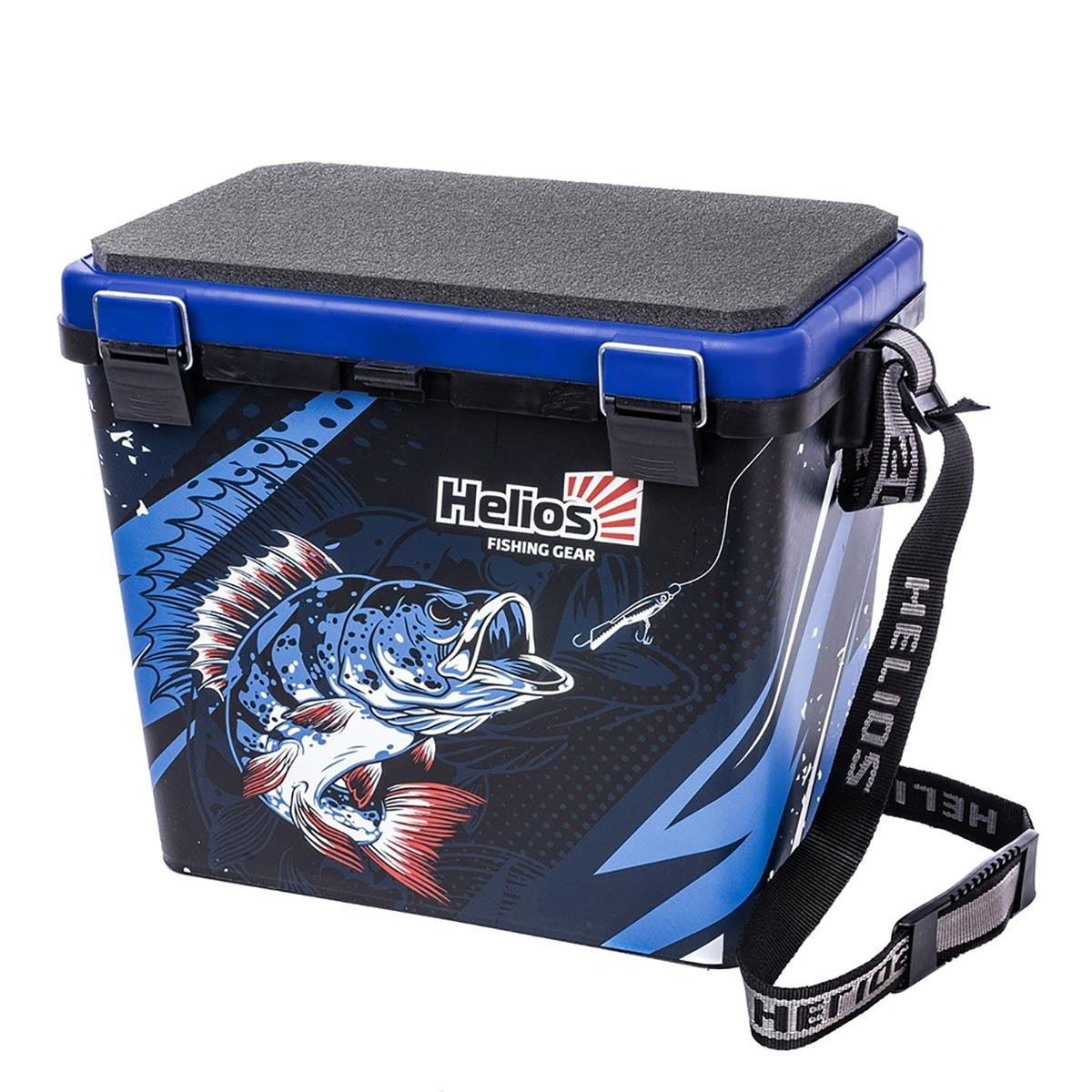 Ящик рыболовный зимний односекционный торговой марки Helios с индивидуальным дизайном с изображением окуня изготовлен из ударопрочного, морозостойкого и в то же время легкого пластика, обеспечивает надежное хранение и транспортировку рыболовных снастей.