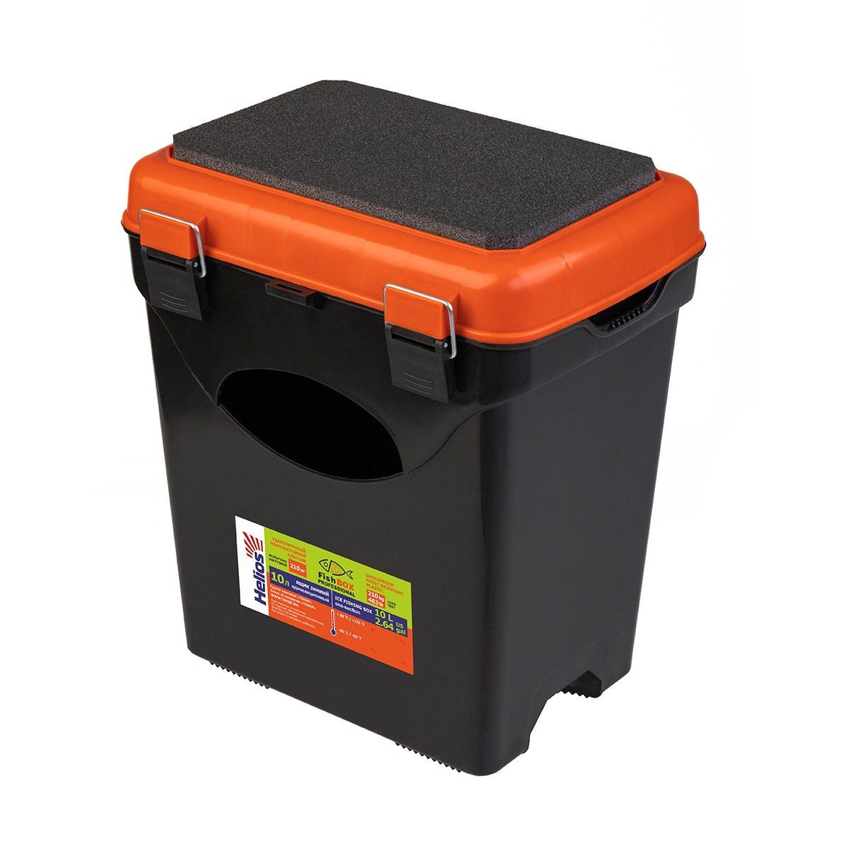 10-литровый зимний ящик Helios FishBox оранжевого цвета обеспечивает надежное хранение рыбы благодаря односекционной конструкции.