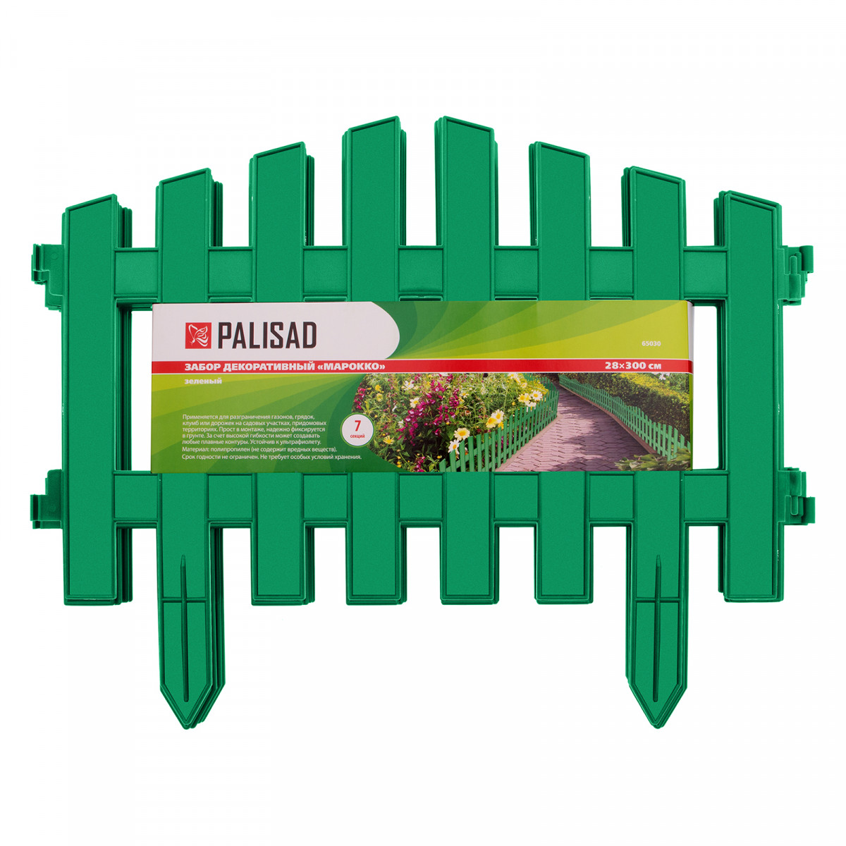 Декоративный забор Palisad «Марокко» 65030 зеленого цвета, размером 28 х 300 см, позволяет обозначить границы зеленых насаждений и грядок, оградить дорожки и зоны отдыха. В комплект поставки входит 7 секций общей длиной 300 см, которые помогут придать аккуратный и завершенный вид придомовой территории или дачному участку.
