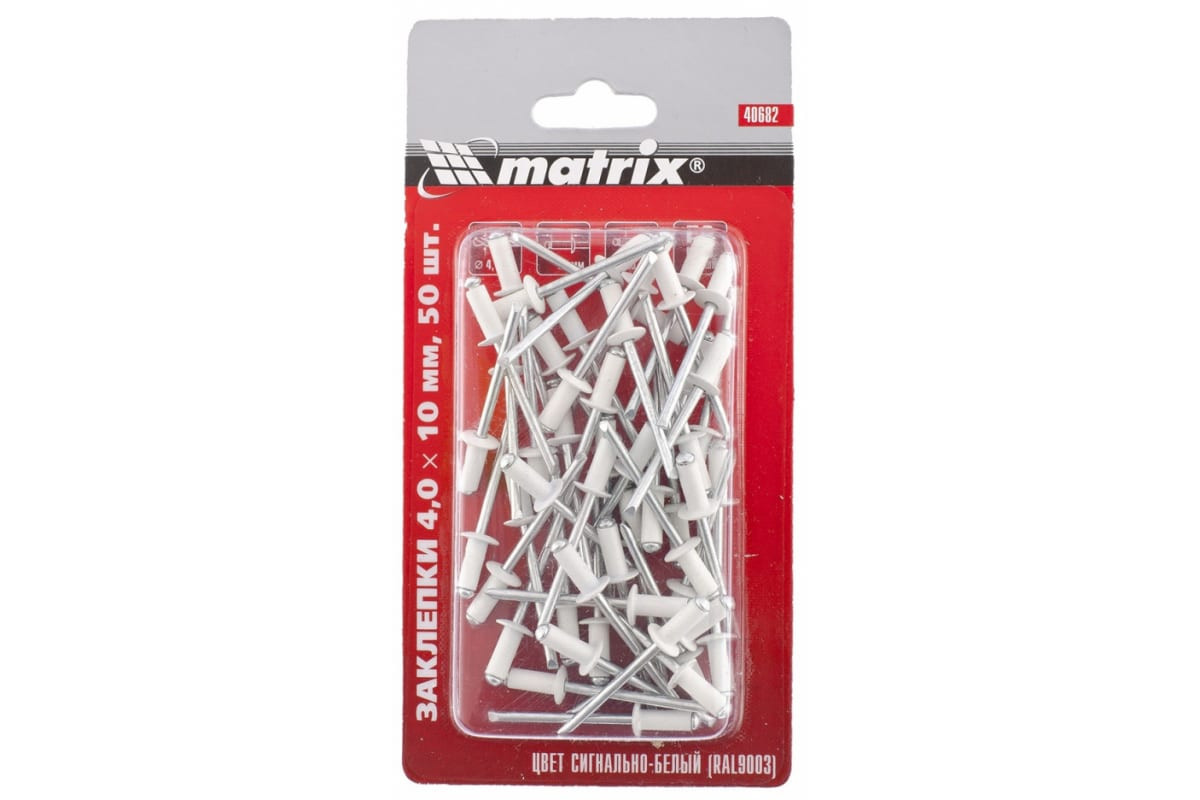 Заклепка 4,0*10 мм RAL 9003 сигнально-белый 50 шт Matrix