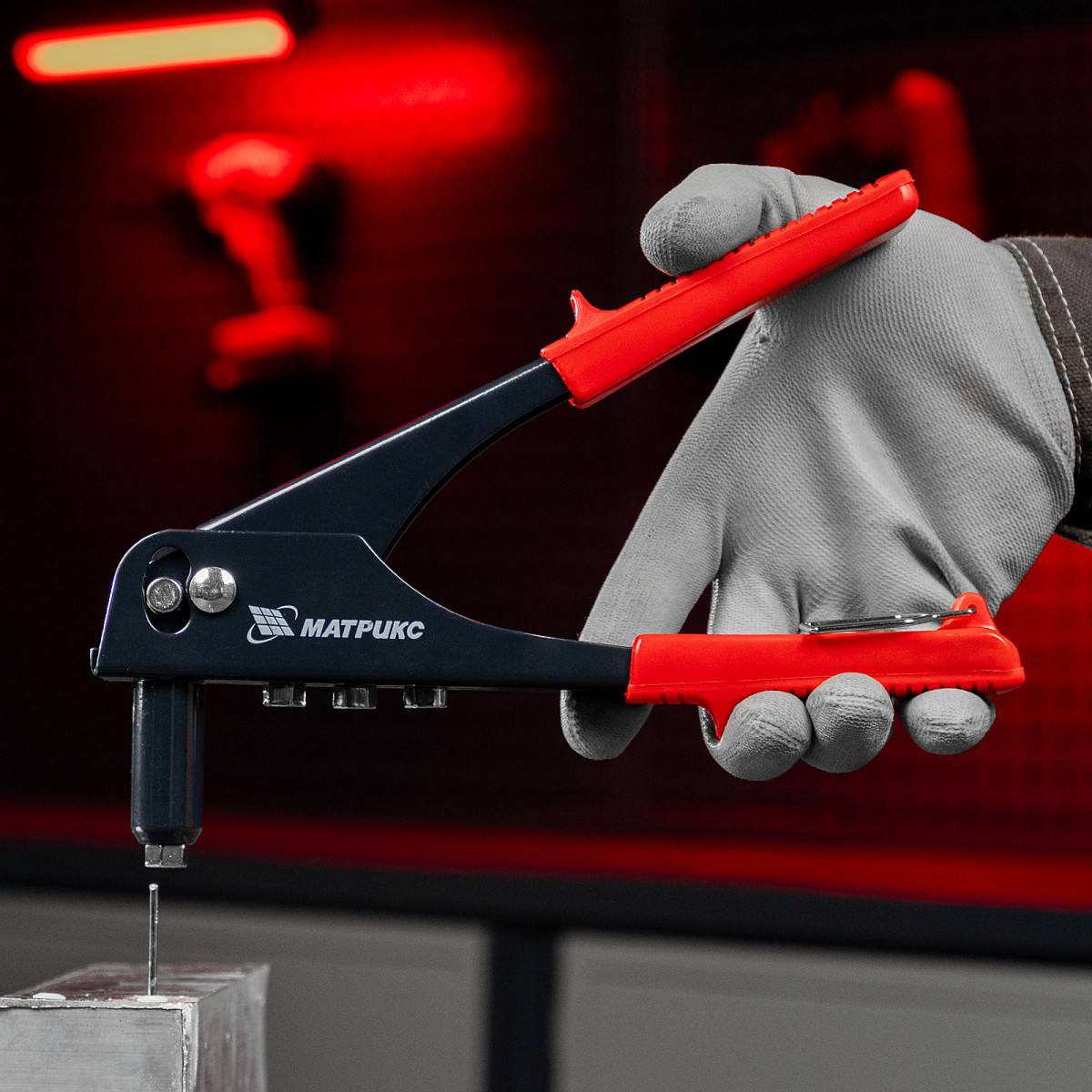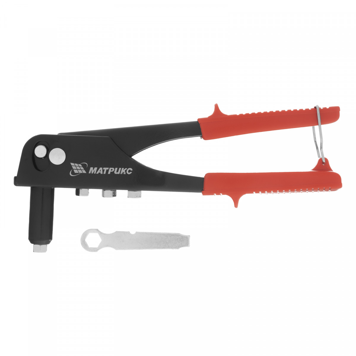 Заклепочник МАТРИКС 40515 длиной 225 мм используется с вытяжными заклепками диаметром от 2,4 до 4,8 мм. Инструмент применяется при работе с многослойным материалом и различными деталями из металла, пластика и т. д. В комплект входят сменные насадки для заклепок различного диаметра, фиксирующиеся на корпусе инструмента, поэтому их можно быстро менять при необходимости. Заклепочник будет полезен во время проведения строительных и ремонтных работ, пригодится также дома, в гараже или на даче., ,Преимущества,Прочность и долговечность — корпус выполнен из конструкционной стали.,Быстрая установка нужной насадки — в комплект поставки входит монтажный ключ.,Комфортная работа — рукоятки с рельефной поверхностью не выскальзывают из руки.,Удобное хранение — металлическая скоба надежно фиксирует рукоятки в нерабочем состоянии.
