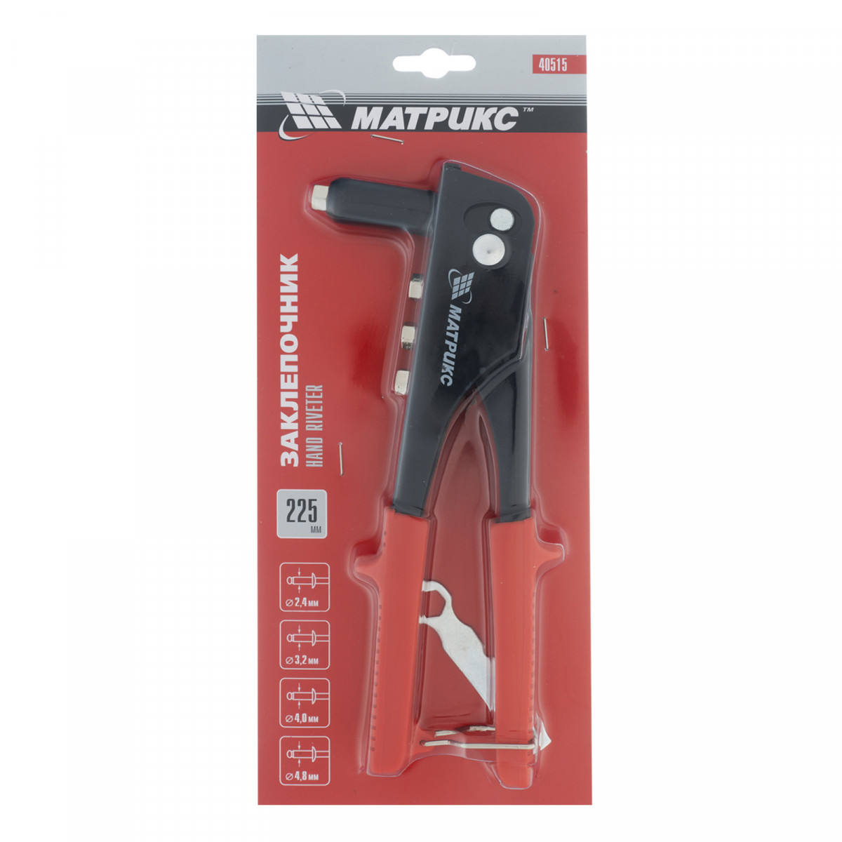 Заклепочник, 225 мм, заклепки 2.4-3.2-4.0-4.8 мм Матрикс