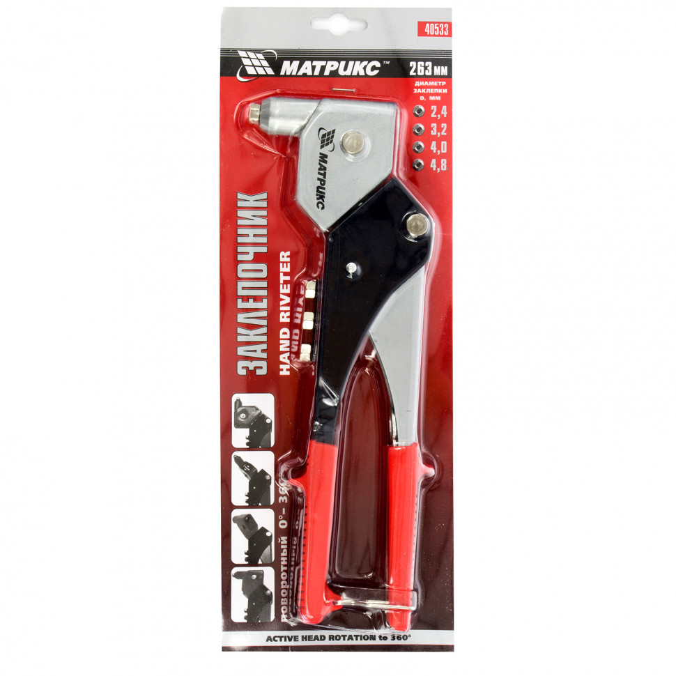 Заклепочник, 263 мм, поворотный 0-360 градусов, заклепки 2.4-3.2-4.0-4.8 мм Матрикс