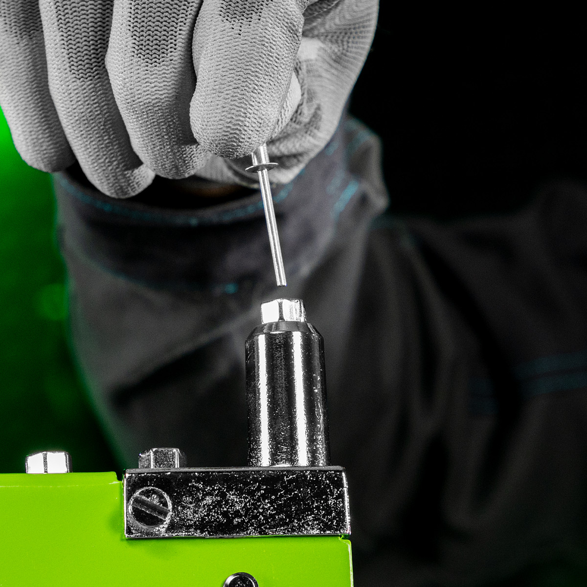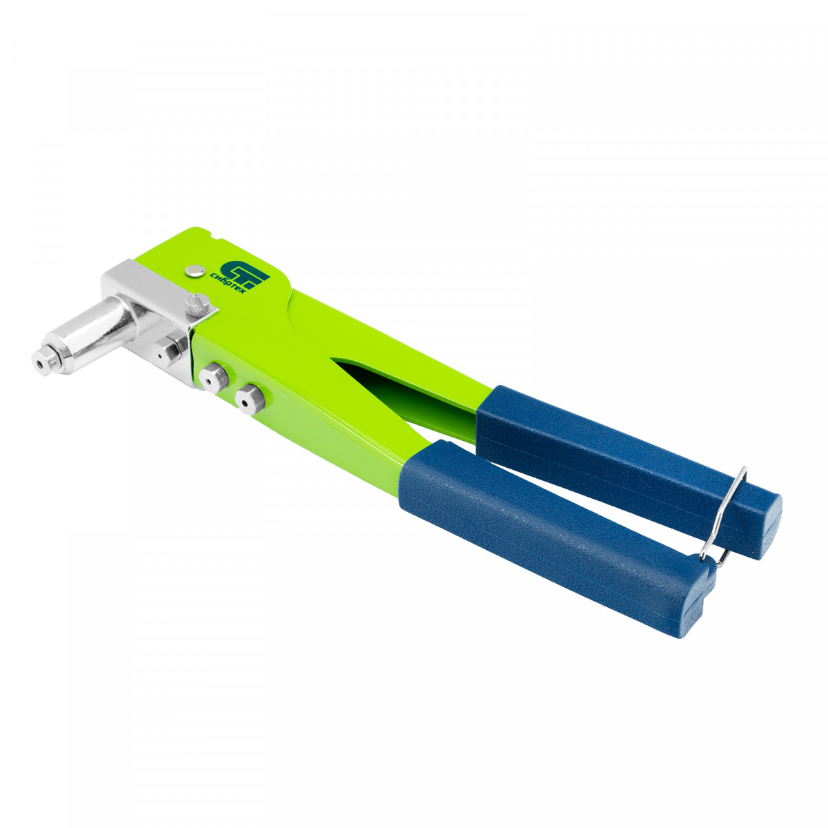 • Скоба для фиксации рукоятки делает более удобными и безопасными хранение и транспортировку заклепочника.