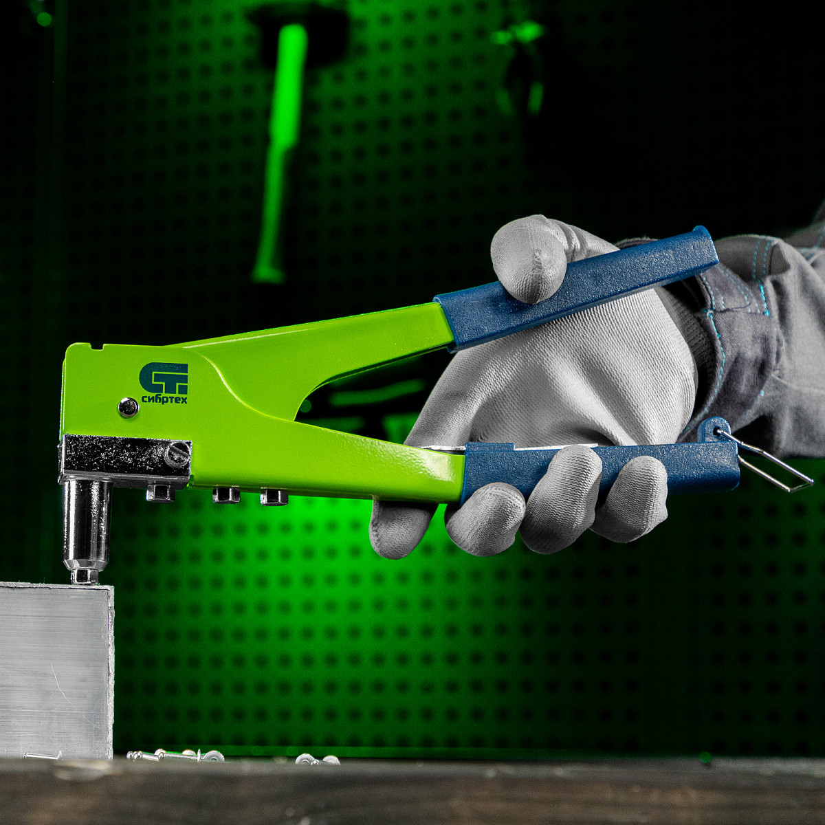 Заклепочник Сибртех 40543, 270 мм, работает с заклепками диаметром 2,4-3,2-4,0-4,8 мм и обеспечивает прочное соединение листовых металлических заготовок. Он станет незаменимым помощником для частных и профессиональных мастеров. Заклепочником удобно работать в труднодоступных местах, т.к. его рабочую часть можно переставлять на 90 градусов.
