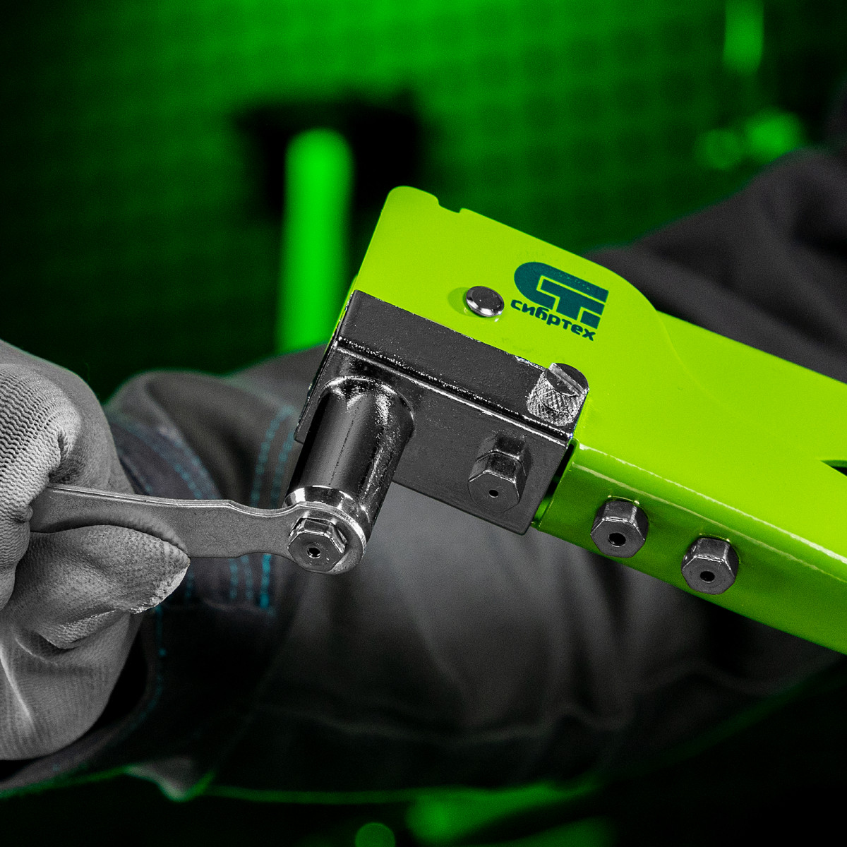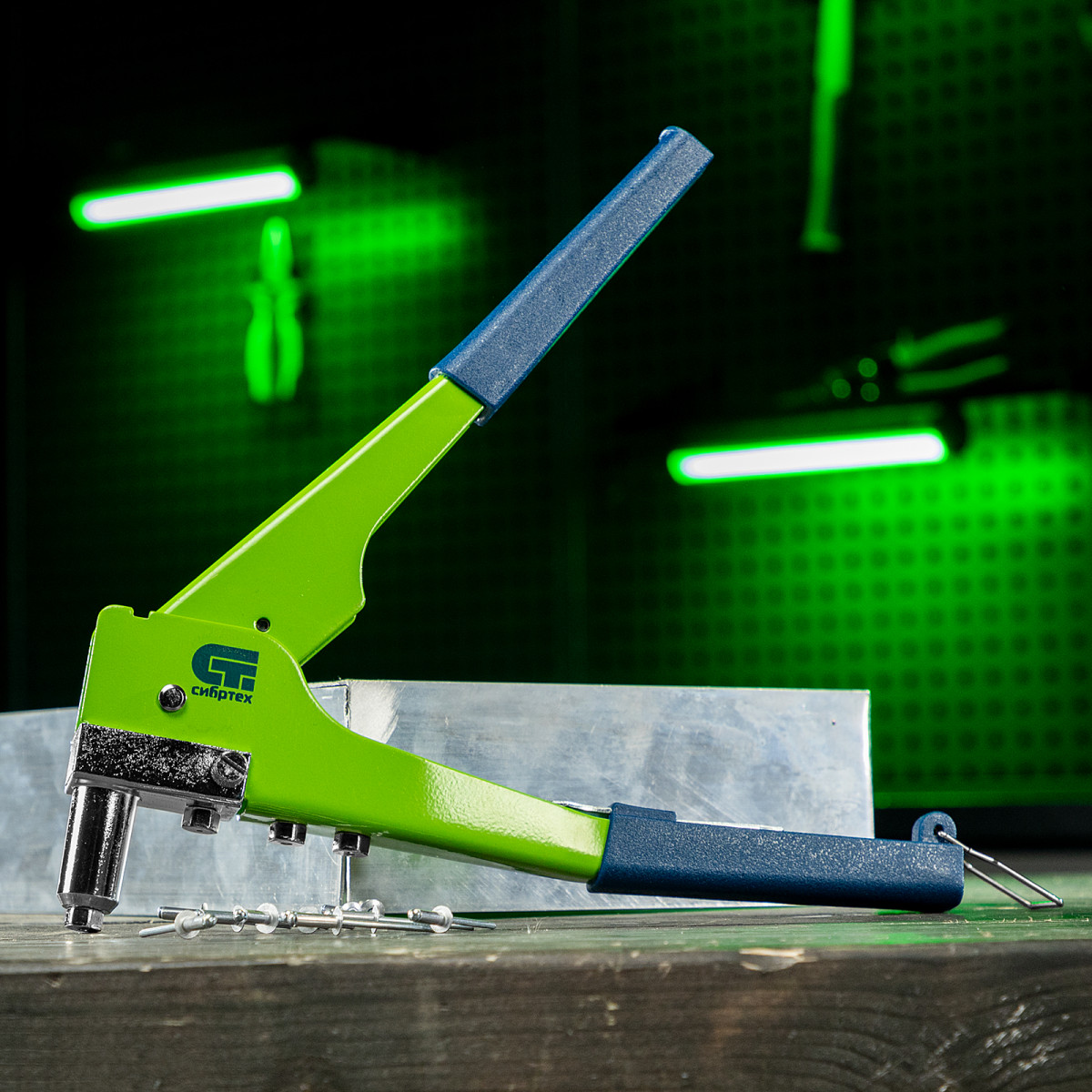• Заклепочник изготовлен из стали методом штамповки, это обеспечивает его прочность и надежность.