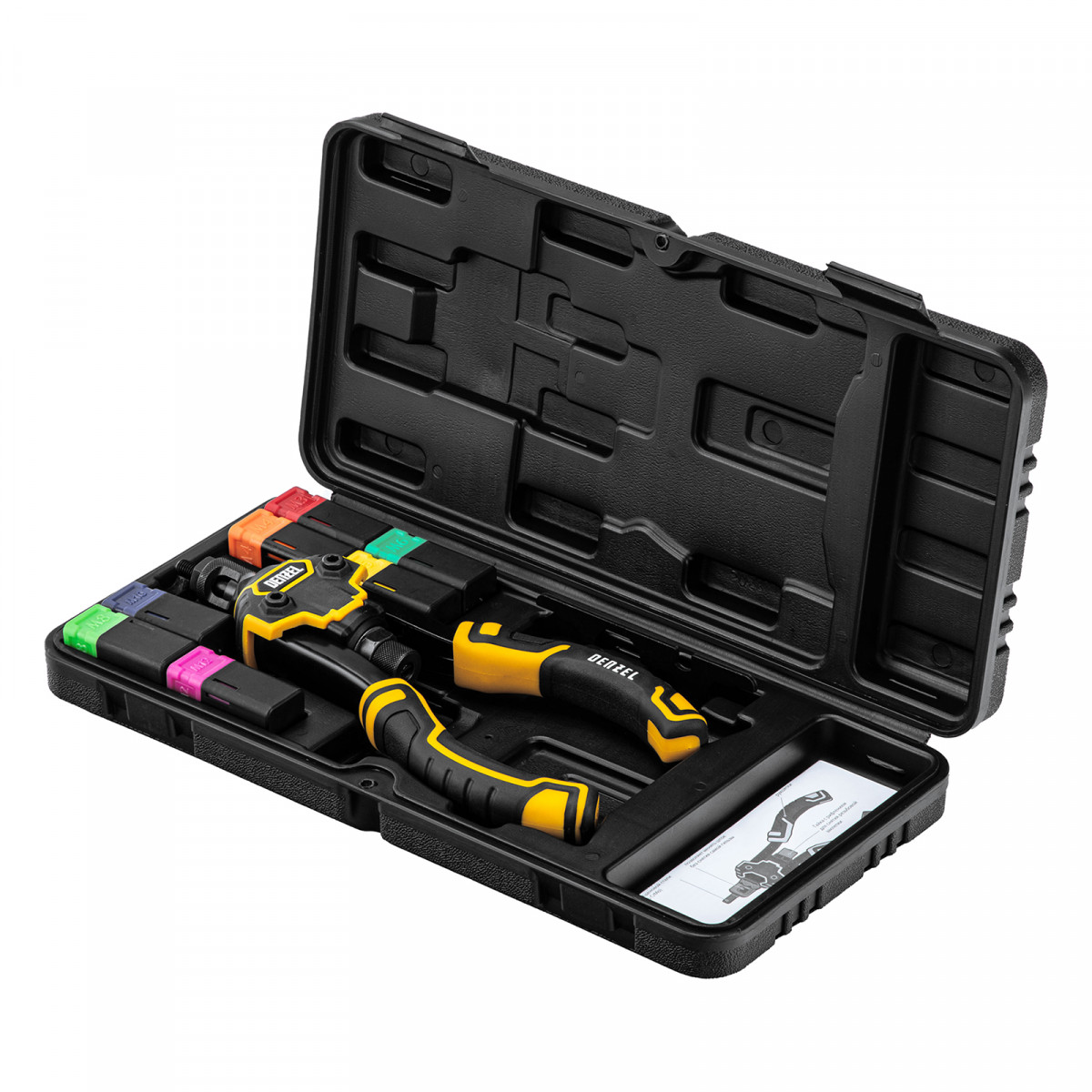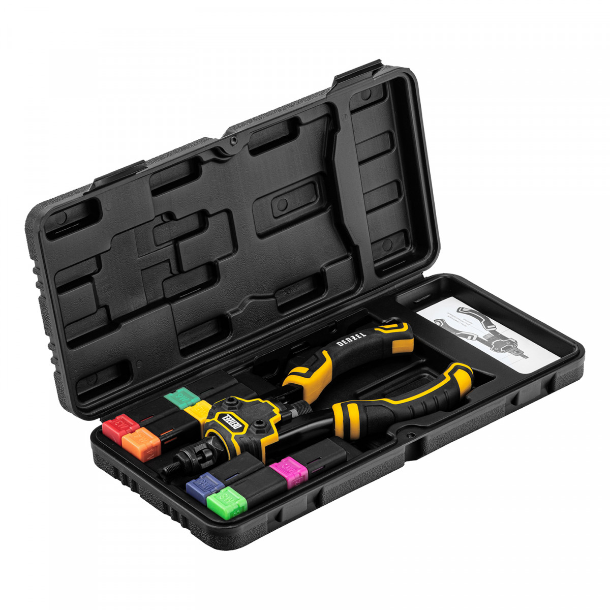• Продуманная комплектация — заклепочник поставляется с ключом для быстрой установки насадок.